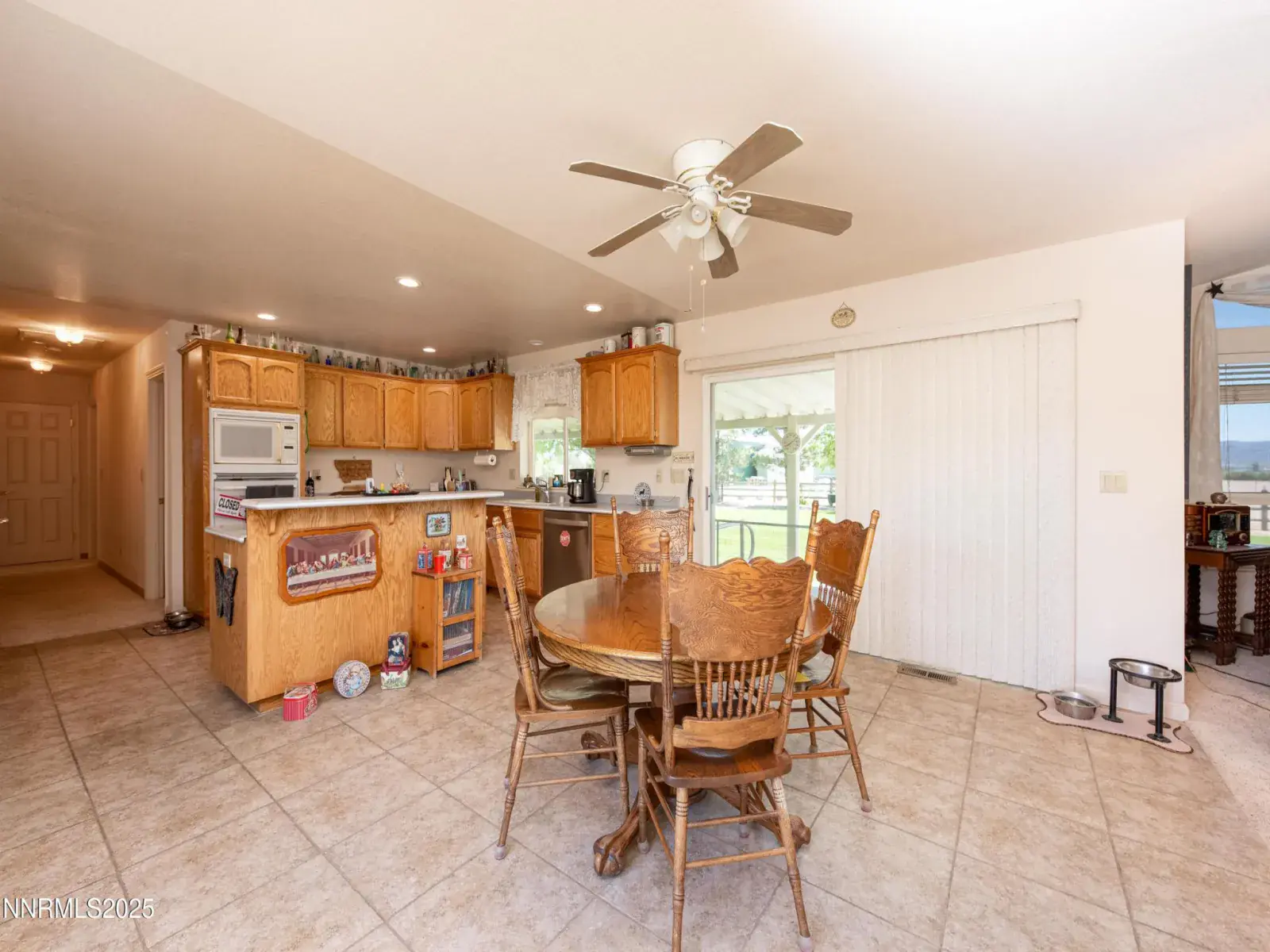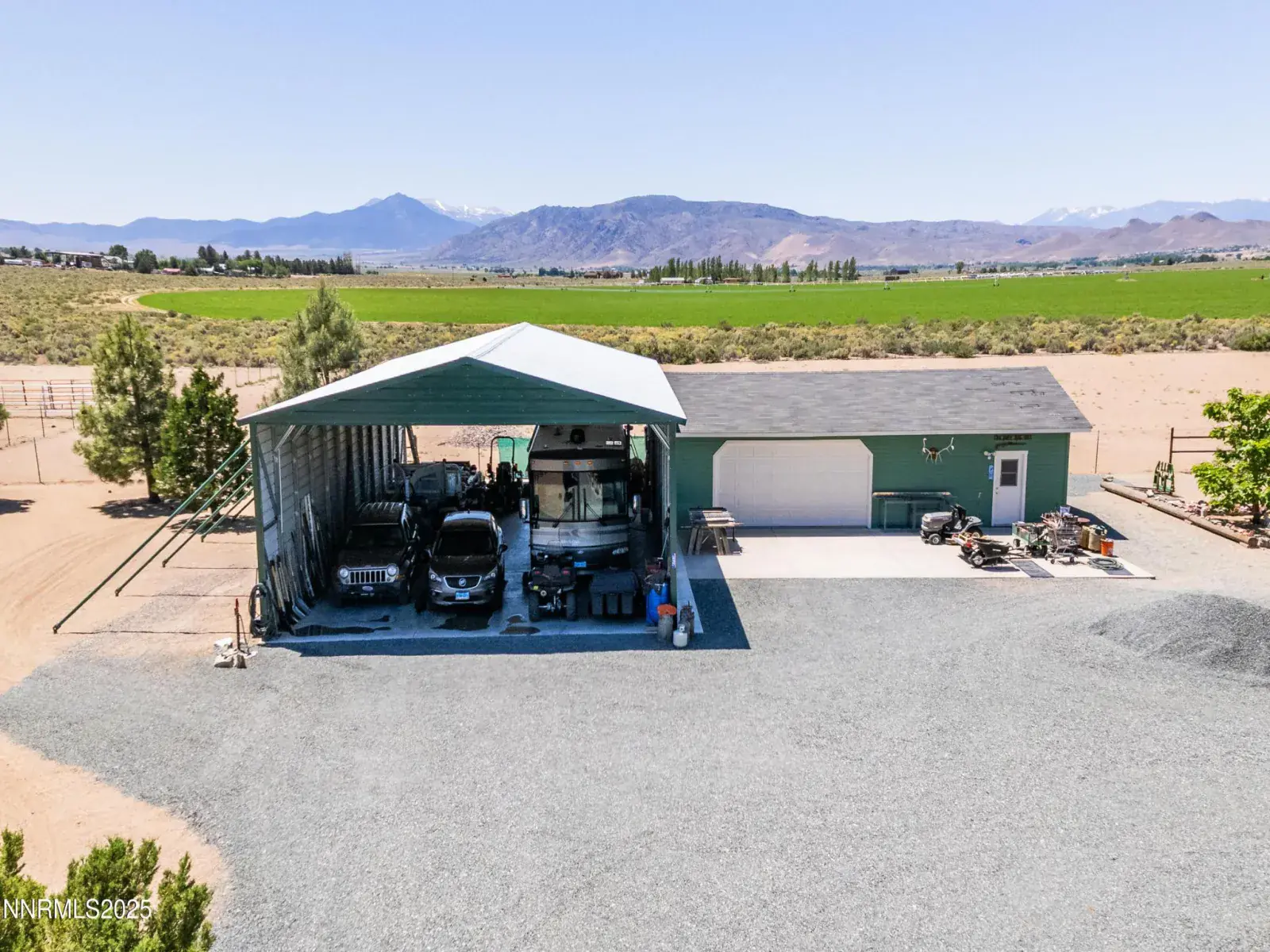 This light and bright split floor plan home features 3 bedrooms and 2 bathrooms, nestled on 4.81 acres in a peaceful rural setting. The spacious living room boasts large windows that frame breathtaking mountain views and a cozy pellet stove for chilly evenings. The kitchen is designed for both functionality and style with a center island and breakfast bar. The large primary suite features a walk-in closet and an en-suite bathroom, complete with a soaking tub, a separate shower stall, and dual vanity sinks. The generously sized hall bath also offers a dual vanity. A separate laundry room with storage cabinets adds convenience. Outside, you’ll find a 960 sq. ft. detached garage with a workshop and a large 40 x 50 RV-covered parking area. Mature trees, a drip irrigation system, fencing, and a 2-stall horse barn with corrals—perfect for equestrian enthusiasts. The back is completely fenced with an electric gate. Enjoy proximity to a wide range of recreational activities: water skiing and fishing at Topaz Lake, trout fishing along the West and East Forks of the Walker River, and hiking and camping in the beautiful Sierras. Sellers are offering a 10K flex credit to the buyer.