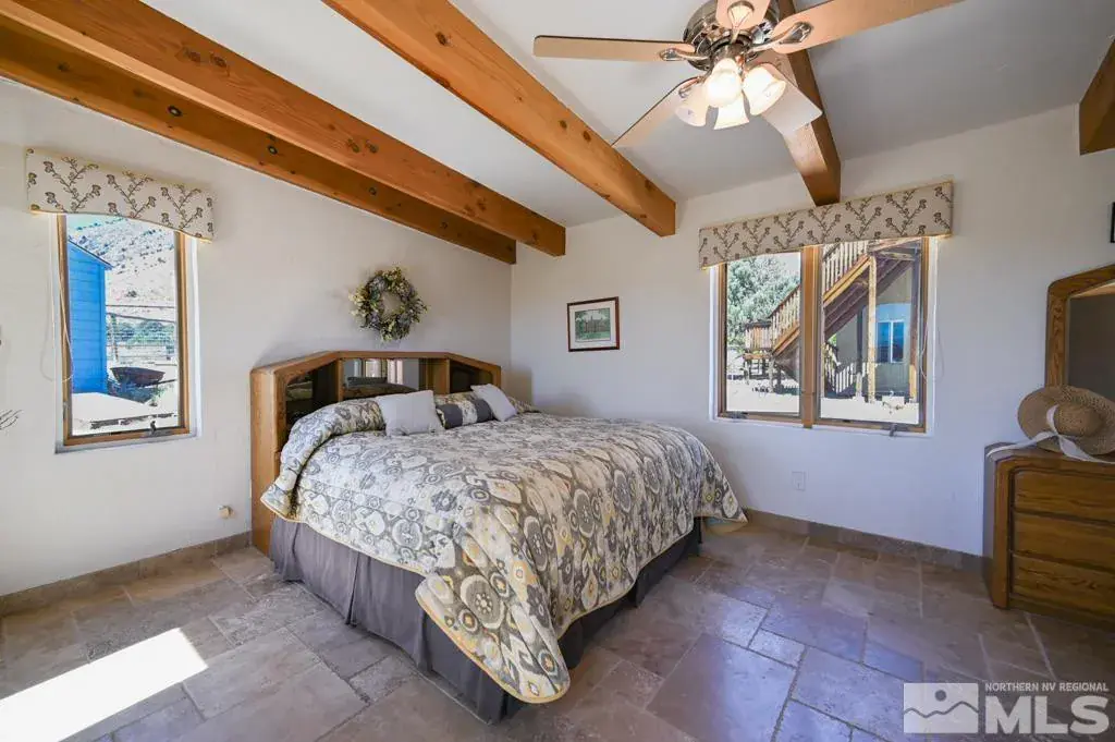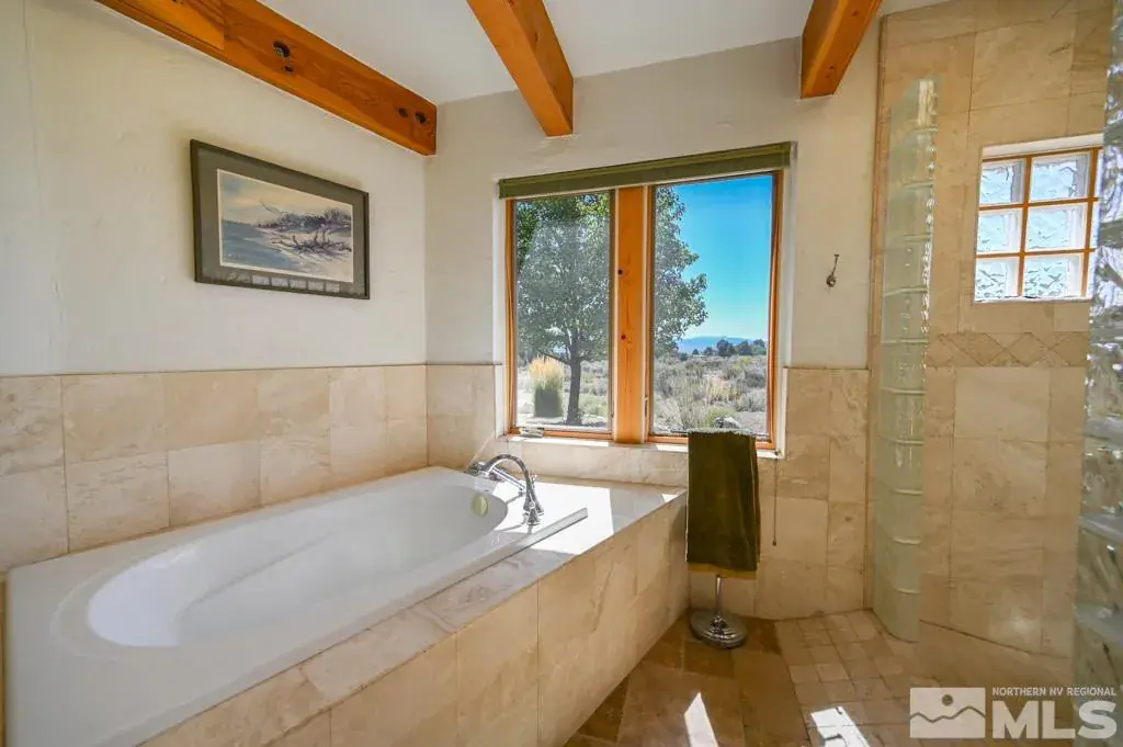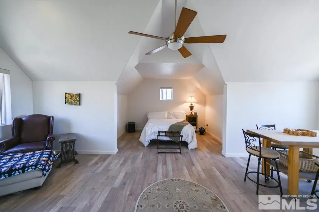 DUE TO NO FAULT OF THE SELLER, THIS HOME IS BACK ON THE MARKET AFTER A VERY SHORT ESCROW. Nestled on a sprawling 10-acre lot in the breathtaking Smith Valley, this nearly 3,500 square foot custom-designed home offers an unparalleled living experience with sweeping mountain and valley views. Every inch of this 3-bedroom, 2-bath home exudes quality craftsmanship and attention to detail., This property is a must-see to truly appreciate the attention to detail and superior craftsmanship. Don’t miss the opportunity to own this exceptional piece of paradise in Smith Valley. Step through the large foyer into the heart of the home, where you’ll find a grand indoor atrium that invites natural light to flood the living spaces. The expansive open kitchen is a chef’s dream, boasting ample counter space, a unique 3-basin sink, and a layout perfect for entertaining. The living room, with its large windows, captures the incredible panoramic views, while the wood-burning stove adds warmth and charm. A loft area above offers additional living space and access to a walk-out deck, perfect for soaking in more of those stunning vistas. The spacious split floor plan provides ultimate privacy, with a luxurious master wing. The entire home features vaulted ceilings adorned with beautiful wood beams. Radiant heat flooring runs throughout the entire home, seamlessly blending comfort with elegance, and the all-travertine tile adds a touch of timeless sophistication. The detached 4-car garage is fully insulated and features a bonus living space with a half bath above, ideal for a guest suite, office, or studio. Outside, the property is a gardener’s paradise with a large orchard full of fruit trees, all equipped with a full drip system. The expansive garden area is protected by extra-tall fencing and also features a complete drip irrigation system. The Home is Fire-resistant and has legal Runway access. AGENTS: Please see the custom build features document in the D tab.