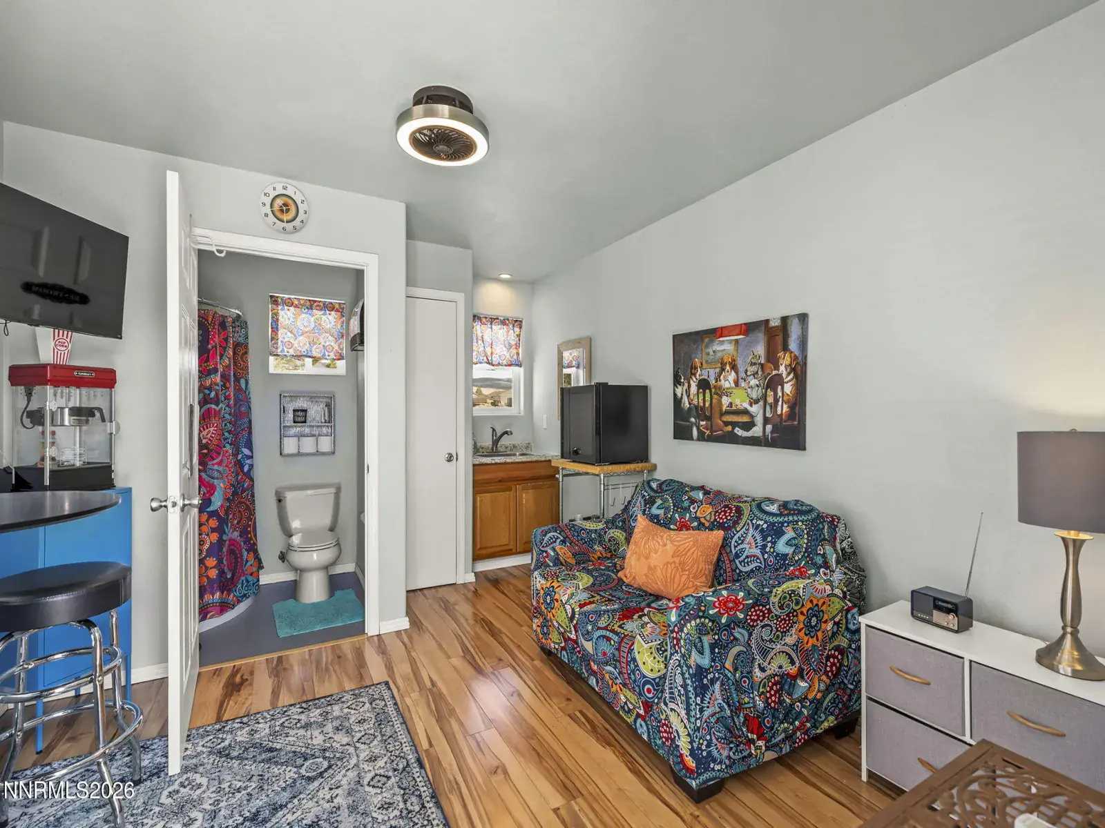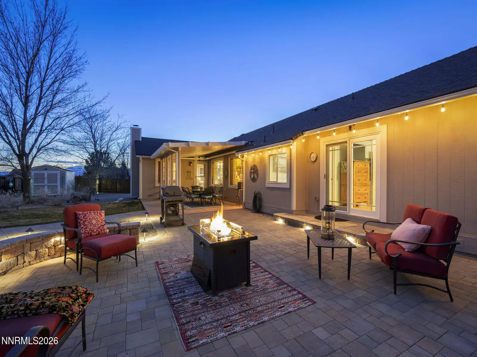 Showstopper in the highly desirable Bridle Path community of Spanish Springs! This beautiful horse property offers the perfect blend of space, comfort, and convenience, located close to shopping, schools, and restaurants. Ideal for multi-generational living, the property features private in-law quarters with its own bathroom perfect for extended family or guests. The oversized driveway offers RV pull-through access and ample RV parking, providing plenty of space for vehicles, trailers, and toys, with added driveway lighting for convenience and curb appeal. Inside, the open floor plan is filled with natural light from an abundance of windows, creating a bright and welcoming atmosphere. The kitchen is a true centerpiece featuring stunning Taj Mahal quartzite countertops, a large breakfast bar, mosaic tile backsplash, and soft-close cabinetry perfect for entertaining or everyday living. The living area also features a traditional wood-burning fireplace, adding warmth and timeless charm. Step outside to a spacious backyard designed for year-round enjoyment with substantial lighting throughout the property. In-ground lighting creates a beautifully illuminated pathway leading to the private in-law quarters, making the outdoor space both functional and inviting for relaxing evenings or gatherings.