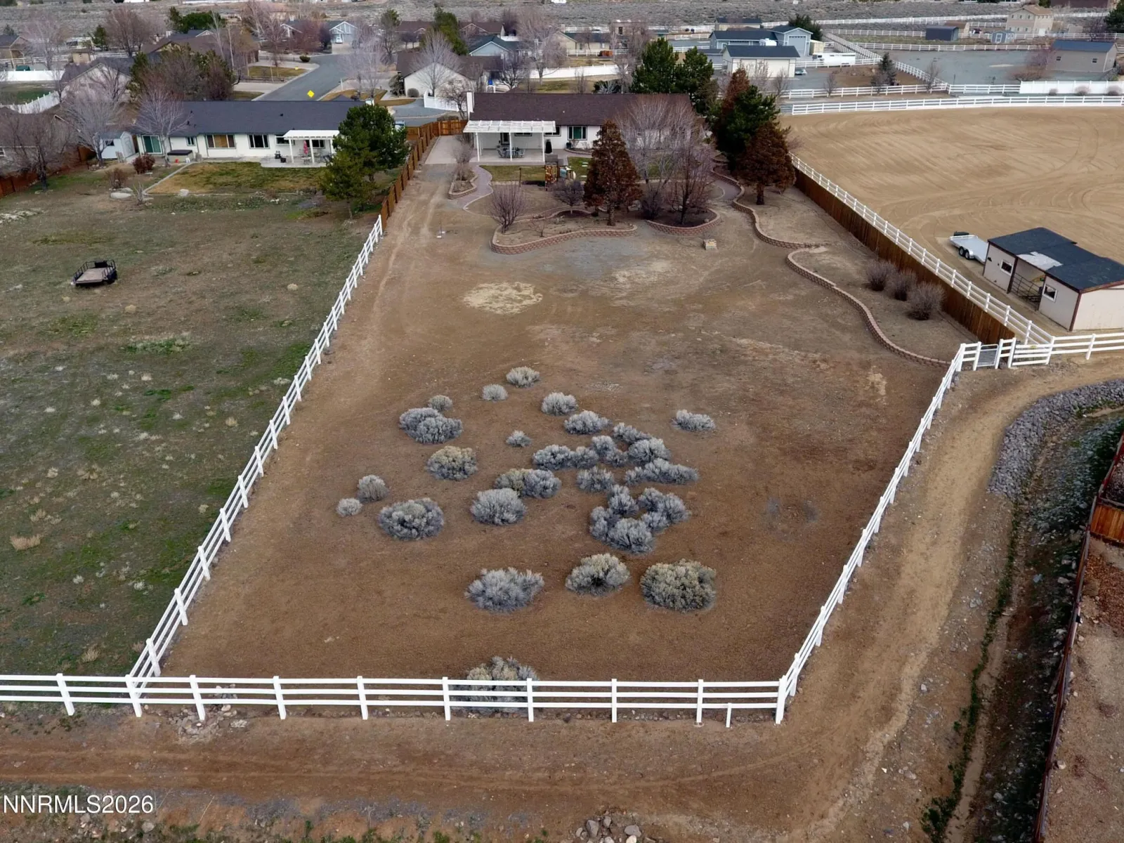 OPEN HOUSE SATURDAY, 4/18 FROM 10AM-2PM! Come take a tour of this amazing Spanish Springs home. It has been remodeled from top to bottom! Just over an acre and zoned for horses! Tons of RV parking and room for a future barn, shop, corrals, etc. Enjoy the equestrian lifestyle of the highly sought-after Bridle Path community, which offers riding paths throughout. This is one of the best lots in the area with tremendous views and privacy. The floorplan of this home was dramatically improved during the remodel, so this home is unlike any other model in the neighborhood. Extensive wood-grain tile flooring, all new lighting, electrical outlets, switches and more. No detail was left untouched. High-end window coverings throughout. The custom man-door from the laundry room and amazing cabinet work will really impress you. This ‘chef’s dream kitchen’ was thoughtfully custom-built! Stainless steel island with second sink. Quartz counters & window sill, soft-close drawers, roll-out shelves, full decorative tile backsplash, custom lighting, huge pantry cabinets and a large gas range with electric oven. The bar stools, refrigerator and microwave are included! The door to the back yard has integrated window blinds that you’ll never have to dust! The family room has a high-end gas fireplace with custom hearth & mantel. It runs on a thermostat remote and has a blower. The laundry room has quartz counters, cabinets and includes the washer & dryer. The primary bedroom is large has a completely remodeled bathroom! Custom walk-in shower, decorative vanity & wall coverings and wood-grain tile flooring. The walk-in closet has custom organizers, too. The second bathroom was also completely remodeled with a new bath-tub and solid surrounds, custom vanity, tile flooring, lighting, etc. The lot has terrific landscaping all-around! The RV gate from the huge driveway opens to a paved RV parking pad large enough for multiple vehicles. You can easily drive to the back of the lot, where there is a ton of room for your horse corrals, shop, toys, etc. The back of the lot opens to the common area, so you ride right out of your yard! There are also extra water spigots in the back. New smart sprinkler control system, tons of drip lines and sprinklers all-around. Front and back lawns have curbing. Extensive paver walking path and retaining walls. Lots of mature trees, shrubs and flowers. The water heater is on-demand. The new furnace and AC system are oversized and very efficient. There is a new water purification system that includes a 1-year warranty! Roof was replaced 8 years ago. All windows have been replaced. The large insulated garage has tons of light, an attic ladder, 220v power and includes cabinets & shelves. Covered front porch. Rain gutters and french drains all-around. The fencing is all in great shape, built with steel posts and stained fence boards. The RV gate has a metal frame, too. The back patio has a gas stub for your BBQ! Much of the furniture can be included in the sale. There are many more upgrades, so allow some time to view this beautiful home. Discover true pride-of-ownership, amazing sunrise and sunset views, a quiet location and plenty of room to relax.