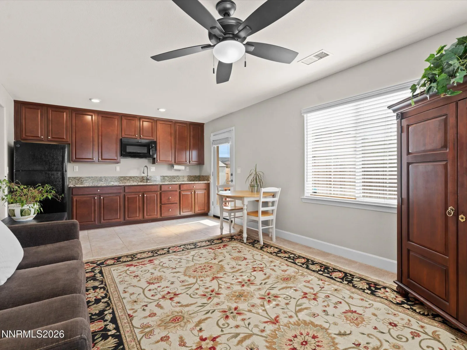Welcome to this spacious single-level home designed for modern living and multi-generational comfort. Situated on a premium, fully landscaped lot, this property offers exceptional versatility with a thoughtfully designed Next GenĀ® “Home Within A Home” layoutāideal for extended families, aging parents, returning adult children, or long-term guests. The private attached suite features its own separate entrance, kitchenette with refrigerator and microwave, living area, laundry closet with washer/dryer, private bedroom and a full bathroom, creating a perfect balance of independence and connection. The main home boasts a gourmet kitchen with an extended island and breakfast bar, granite countertops, and abundant cabinetryāperfect for both everyday living and entertaining. Enjoy a comfortable, open floorplan with low-maintenance tile flooring and a recently painted interior that feels fresh and inviting. Additional highlights include an oversized laundry room with built-in cabinets, a 3-car tandem garage with ample space for vehicles and recreational gear, and impressive RV access with over 15 feet of clearance along the garage side. Step outside to a beautifully maintained backyard featuring a paver patioāideal for summer BBQs or relaxing eveningsāalong with a playset and plenty of room for outdoor fun. The front and back yards are fully irrigated with automatic sprinkler and drip systems to keep all of the trees, grass, garden and decorative plants looking great all year round, with two additional hose bibs added to the backyard for convenience. Tucked away in a quiet cul-de-sac, this home offers both privacy and convenience, located just a short drive from world-class fishing and boating at Pyramid Lake and year-round recreation at Lake Tahoe.