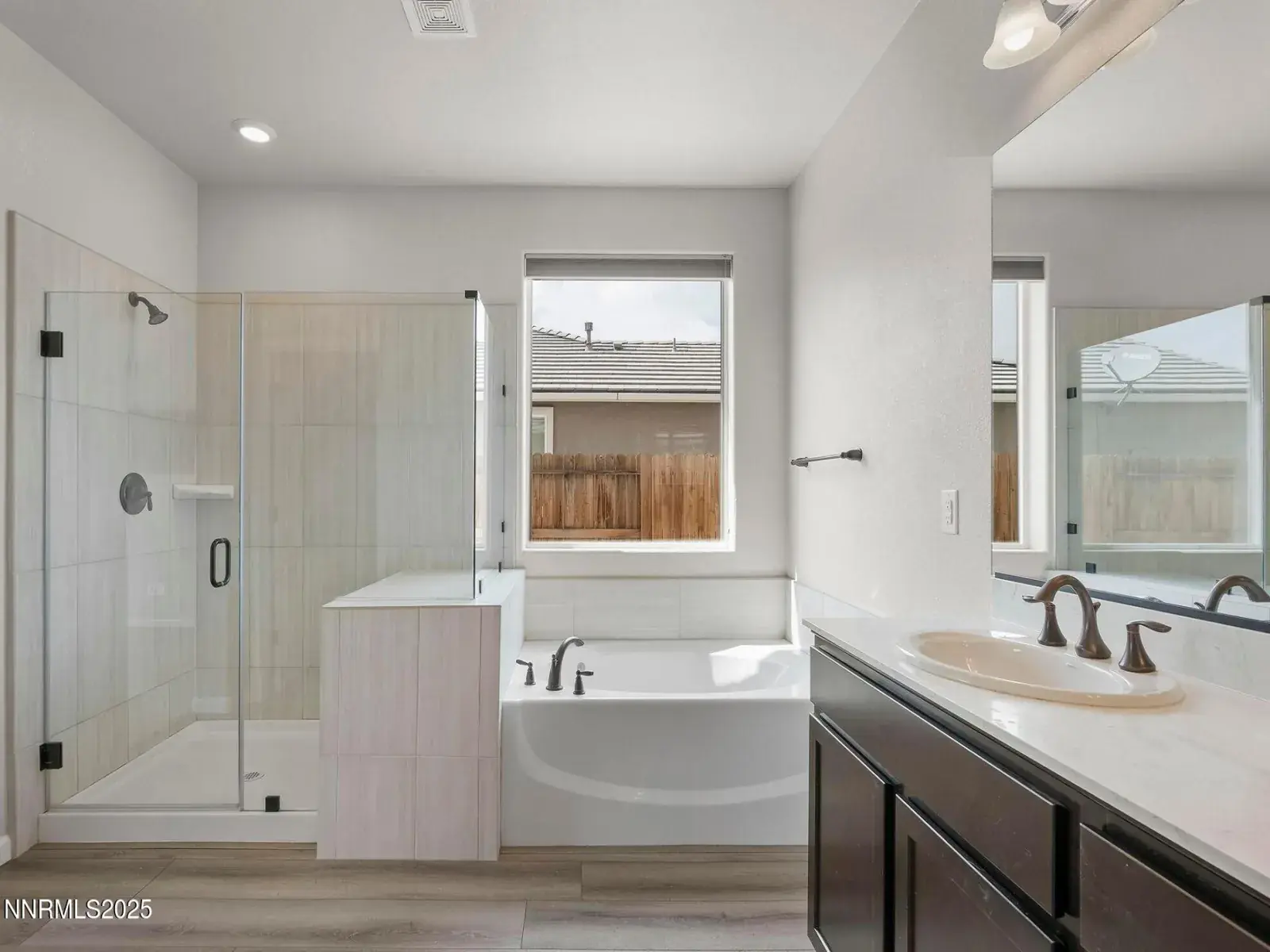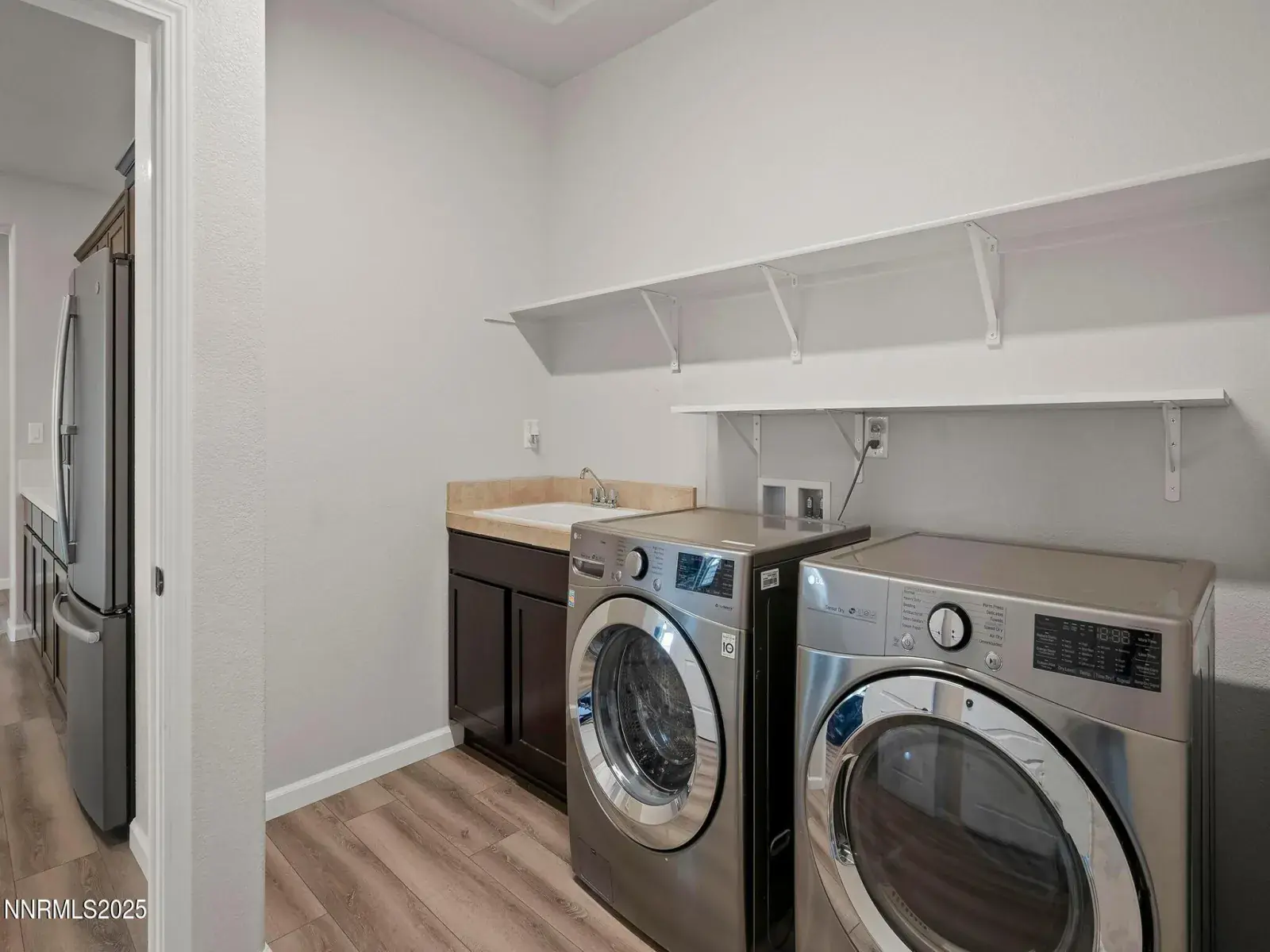 Built in 2019, this well-maintained home in Spanish Springs offers modern design, an open floor plan, and contemporary finishes throughout. The kitchen features upgraded cabinetry, solid surface countertops, and a spacious island. The primary suite includes a large walk-in closet and an ensuite bathroom. Additional highlights include flexible living spaces, abundant natural light, and a generously sized lot suitable for outdoor living, toys, or custom enhancements. With close proximity to shopping, dining, schools and Northern Nevada recreation, this home blends modern sophistication with the convenience of a thriving community.