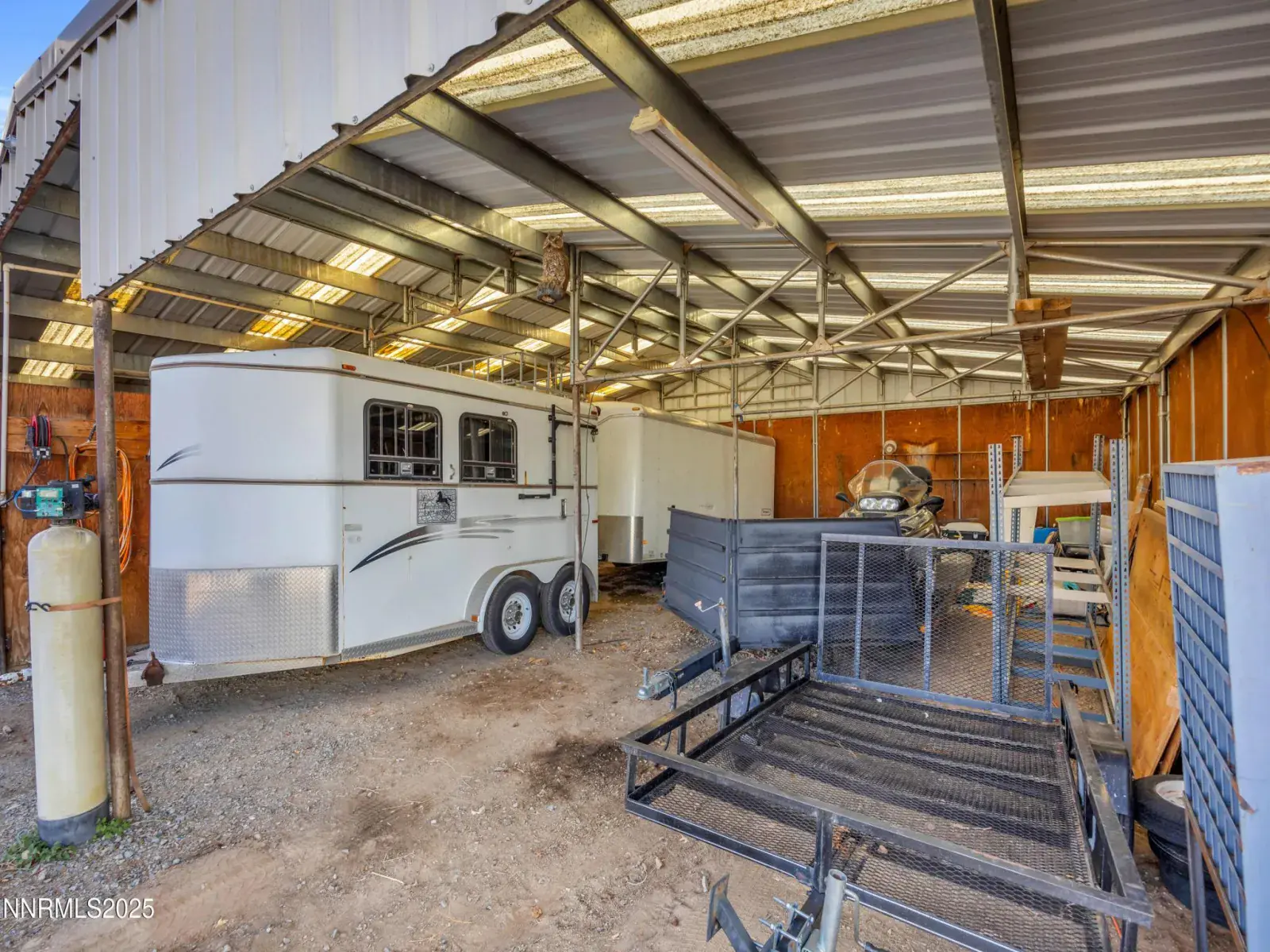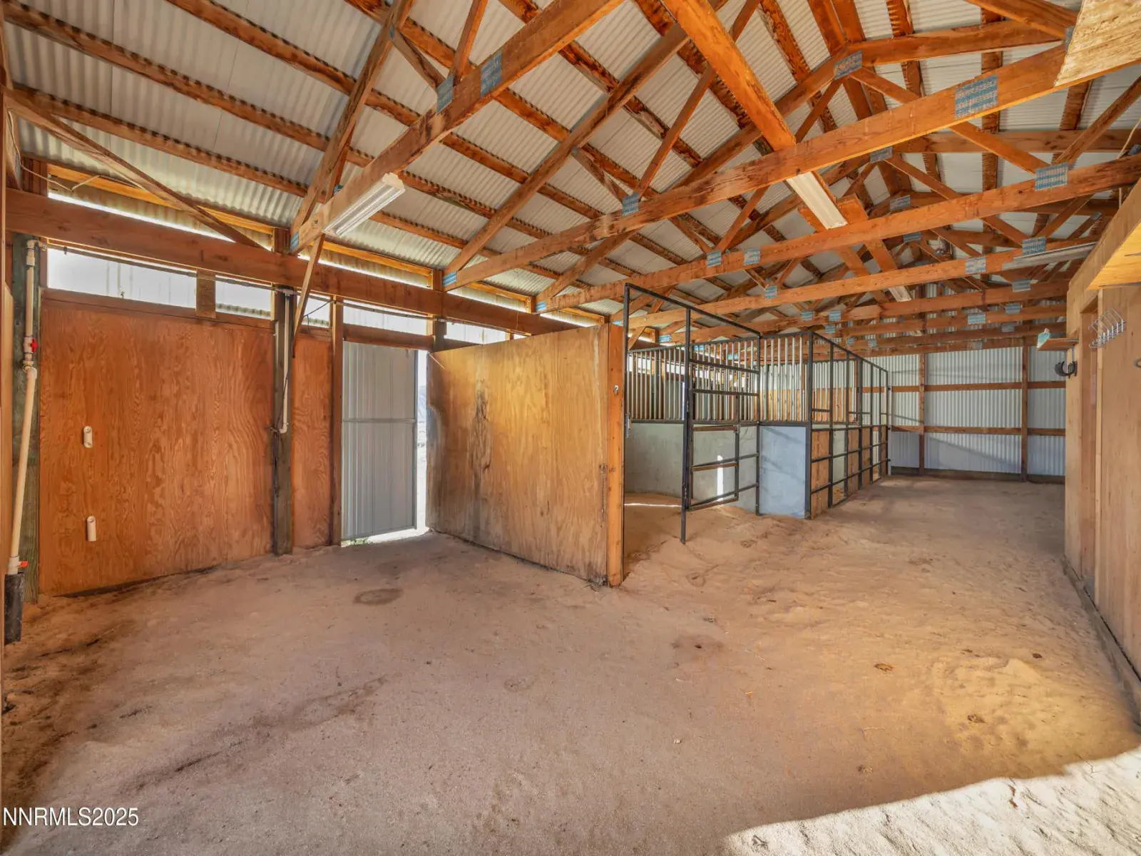 Contemporary Home on 10 acres, in “Spanish Springs Valley Ranches.” The house is 1964 square feet and includes a loft with spiral staircase leading to it. River Rock hearth is warmed by the pellet stove and radiates warmth to the great room. Great room is vaulted and features floor to ceiling, vertical windows all around. Stunning valley and mountain views out every window. Primary bedroom has vaulted ceiling with floor to ceiling, vertical windows thoughtfully placed. Sliding door leads to a private deck. Attached bathroom has wonderful light for plants. It features a walk-in tub, and oversized shower, double sinks, skylights and more of those wonderful floor to ceiling windows. You’ll feel like you are on vacation every morning! Kitchen has been enhanced with granite counters and new cabinet facing. All the appliances and washer and dryer stay with the house. Kitchen window is above sink and looks on to the circular, front driveway. The 10 acres is level and fully fenced. There is also interior fencing. At the north end of the property, there is another gate and turn around. Bring your horses as there is a 3-stall barn with tack room and electricity. In addition, there is a Tool Barn with 220 volts, an air compressor and a semi-truck can drive inside. There are two RV hook-up areas. 25 El Caballo Trail is on a quiet street and just minutes from great shopping and scenic, Pyramid Lake. The garage was originally built as a 3 car garage, 816 SF. A laundry room was added to the back of one stall. The front remains open out garage door. (See Floorplan) There is also a laundry closet inside the house, located in the hall. Lastly there is TMWA Water in the street and ATT is installing fiber optic cable in the area. Come check it out today!