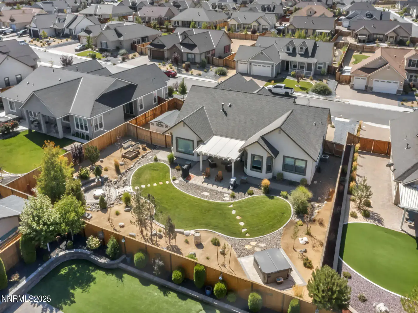 SHOWINGS START SAT 1/3/26. Welcome to this warm and inviting modern single-story home located in the Shadow Ridge community of Spanish Springs. With 2,343 square feet of comfortable living space, this home is thoughtfully designed for everyday life, offering the perfect setting for family time, gatherings, and making lasting memories. At the heart of the home, the open great room invites you to slow down and settle in, anchored by a cozy fireplace with custom built-ins, perfect for family movie nights, holiday gatherings, or quiet evenings at home. With three spacious bedrooms and two well-appointed bathrooms, there’s room for everyone to feel comfortable while still enjoying their own space. The primary suite feels like a true retreat, offering an oversized bedroom and a custom-designed, extra-large walk-in closet that keeps daily life organized and effortless. The kitchen is warm and welcoming, featuring grey shaker cabinetry, black granite countertops, and plenty of space for cooking, sharing meals, and gathering with loved ones. A thoughtfully designed laundry room with added cabinetry provides practical storage. Set on a generous 0.33-acre lot, the home offers space to play, relax, and enjoy the outdoors. The three-car garage and potential RV parking add flexibility, while the backyard is where memories are made, lush landscaping, raised garden boxes, a charming hen house, a peaceful water feature, and a fire pit for evenings spent together. Unwind at the end of the day under the custom pergola or in the jacuzzi, creating your own private escape at home. Ideally located close to shopping, schools, and everyday conveniences, this home offers the perfect balance of comfort, space, and location, an inviting place to grow, gather, and truly feel at home in Spanish Springs.