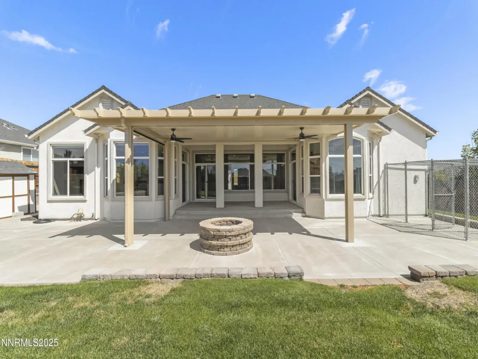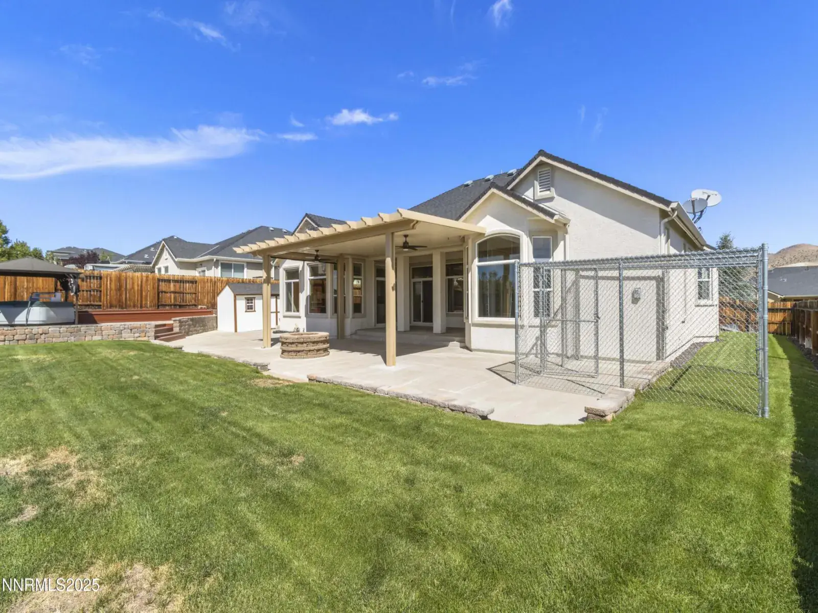 Enjoy beautiful mountain views nestled in the Eagle Canyon community in Spanish Springs. This spacious home has an abundance of natural light, high ceilings and plenty of space for entertaining. The covered patio includes outdoor fans and a shade screen. Wind down in the hot tub and sit around the fire pit with friends and family. Come view this little slice of paradise, it will not disappoint. Oh,,, did I mention the everlights in front and around the side of the house? Also, front yard has custom turf which equals no watering. Don’t miss out on this beautiful house…