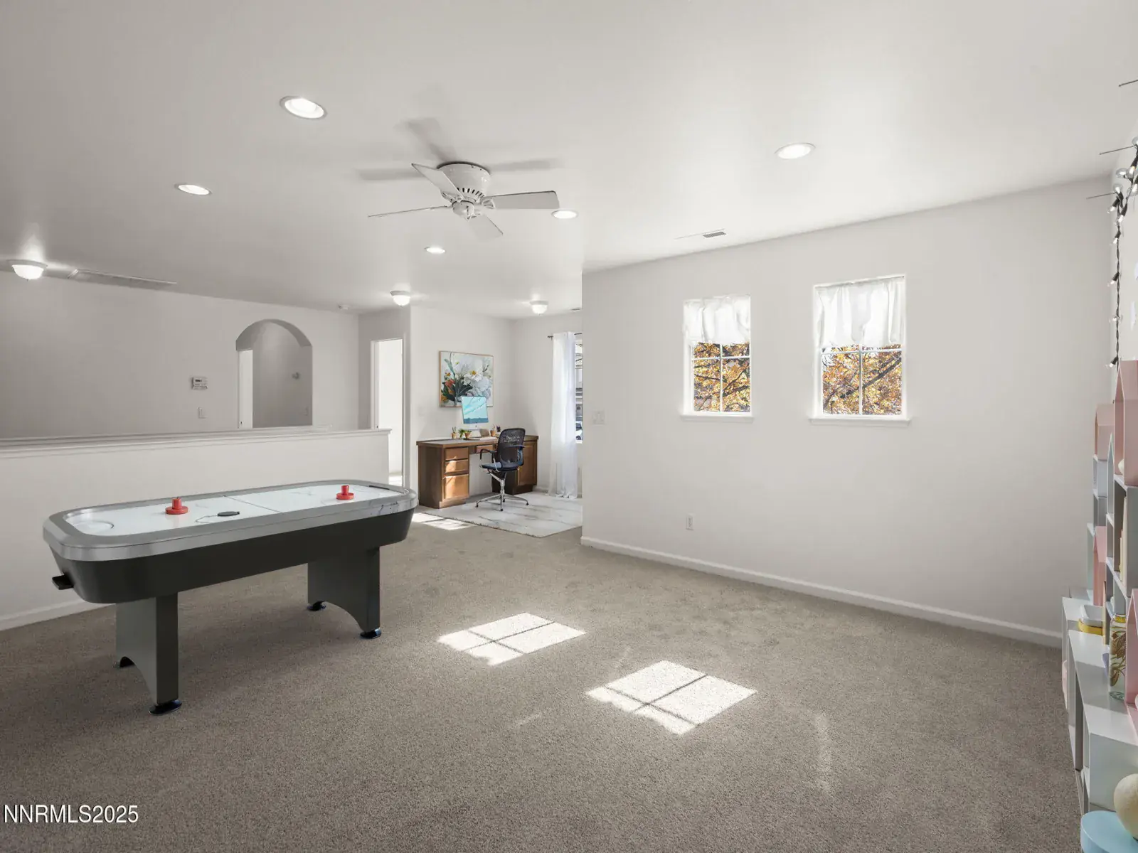 Nestled in the highly sought-after D’Andrea golf course community of Sparks, 2552 Cosimo Court offers the perfect blend of elegance, comfort, and convenience. This beautifully maintained home features over 2,500 square feet of living space with four spacious bedrooms and two and a half baths, thoughtfully designed for both relaxation and entertaining. The open-concept floor plan welcomes you with high ceilings, abundant natural light, and a warm, inviting atmosphere. A well-appointed kitchen with a center island and ample cabinetry flows seamlessly into the family room, where a cozy fireplace creates the ideal space for gatherings. Upstairs, a generous loft provides flexible living options such as an office, playroom, or media space, while the primary suite offers a private retreat with a walk-in closet and spa-like bath. Situated on a quiet cul-de-sac corner lot, this home enjoys privacy and curb appeal, with low-maintenance landscaping, patio, and mountain views that reflect the beauty of Northern Nevada living. The D’Andrea neighborhood is known for its scenic walking trails, proximity to top-rated schools, parks, and convenient access to shopping, dining, and I-80. Experience refined suburban living in one of Sparks’ most desirable communities. 2552 Cosimo Court is ready to welcome you home.