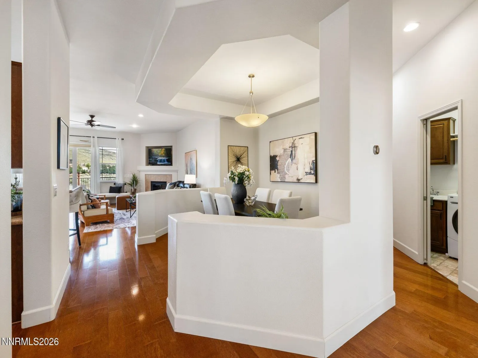 Set within the Fairways at Kiley Ranch community, this single-level home offers a lifestyle defined by ease, views, and everyday connection to the outdoors. Framed by sweeping foothill vistas with Mount Rose to the south, the setting brings a sense of openness and calm to daily living. Located just steps from a charming neighborhood park and jungle gymāand a short walk to the Kiley Fairways clubhouse and 9-hole walking golf courseāthe home blends convenience with an active, community-oriented lifestyle. Inside, the light-filled layout is both functional and inviting, featuring three bedrooms, with the third currently styled as a home office. Upgrades include engineered hardwood flooring throughout, newer carpet in the bedrooms, elevated wood cabinetry, and more. Low maintenance backyard with a full paver patio and automatic drip system for natural trees to the sides. An additional flex space with a closet and private entry from the garage offers ideal use for storage, a gear room, or added versatility. A rare combination of views, walkability, and thoughtful livability.