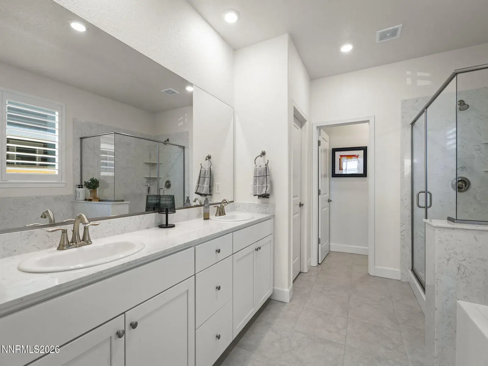 Stunning, upgraded Lennar-built home that’s better than new! Offering over 2,800 square feet of living space, this home welcomes you with a spacious entryway featuring vaulted ceilings and abundant natural light. The open, functional great room flows from the entry, making entertaining and relaxing a breeze. The kitchen is beautifully appointed with GE Profile appliances, quartz countertops, ample cabinetry, and a walk-in pantry. The primary suite is conveniently located on the main level and serves as a true retreat, complete with a spa-like bathroom featuring a garden tub, oversized shower, dual vanities, and a generous walk-in closet. Upstairs, you’ll find a large loft area, two additional spacious bedrooms, and a full bathroom. The backyard is designed for relaxation, featuring a large covered patio with recessed lighting. An oversized concrete patio extends to a built-in gas firepit, and there’s also a gas stub for a BBQ. A finished three-car tandem garage ensures room for everything! Additional features include custom plantation shutters and window treatments throughout, upgraded hardware and fixtures, neutral paint, and brand-new carpeting downstairs. Schedule your appointment to see this beautiful home today!