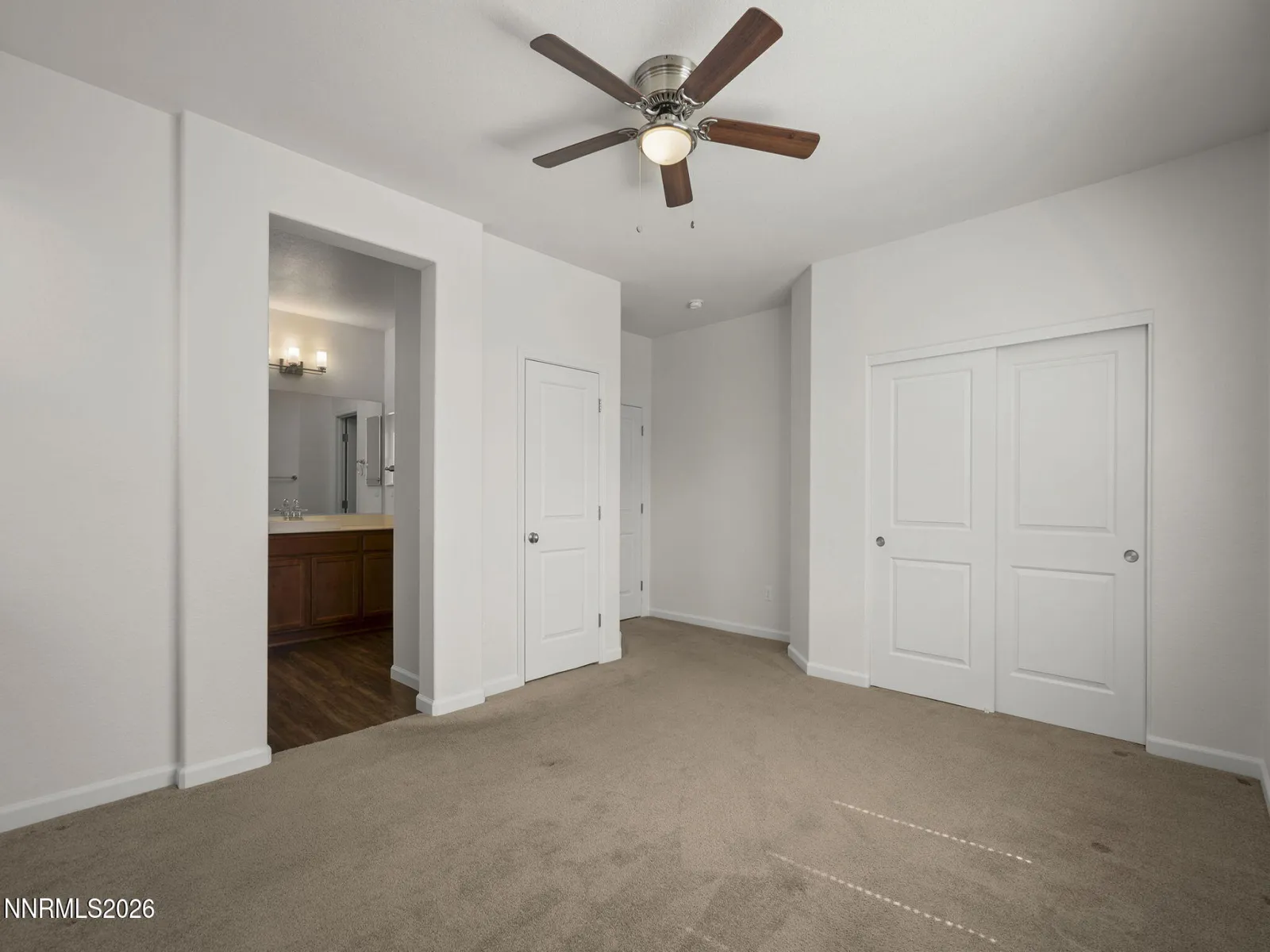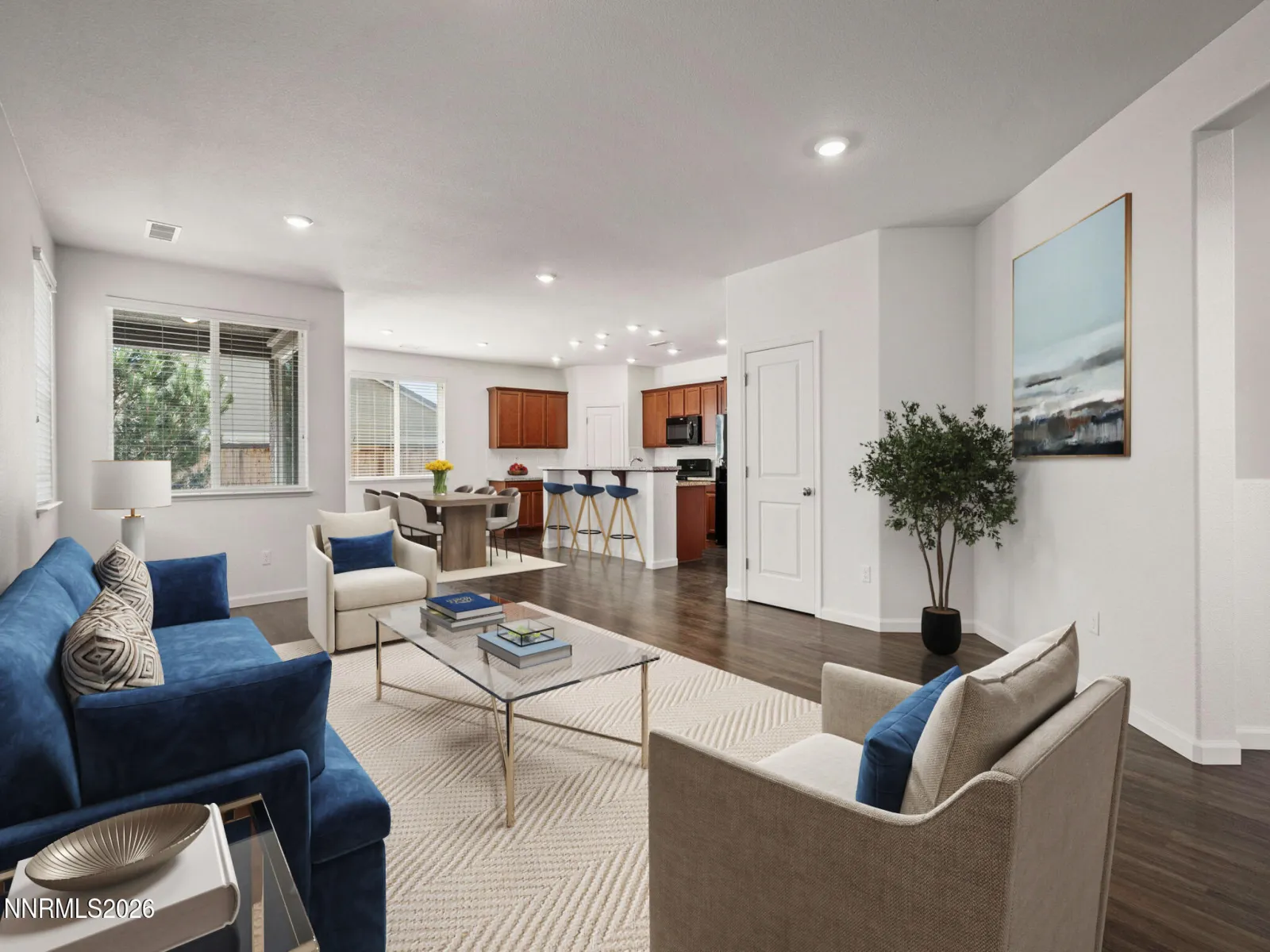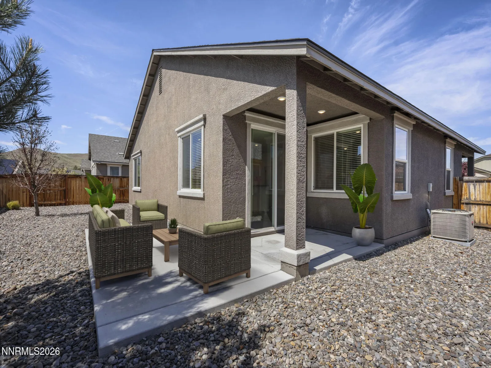 Welcome to this beautifully maintained, move-in ready single-story home located in the highly desirable Kiley Ranch community. This 3 bedroom, 2 bathroom home with a 2-car garage offers a bright, inviting feel with new interior paint throughout and laminate flooring. Designed with a functional and comfortable floor plan, the primary suite is thoughtfully positioned on one side of the home, while the two additional bedrooms are located on the opposite side, providing privacy for all. The primary bedroom features dual closets for ample storage, a large ensuite spa-like bath, and additional linen closet. The open-concept layout creates a seamless flow and is perfect for everyday living and entertaining. Step outside to a low-maintenance backyard featuring both covered and uncovered patio areas, which is ideal for relaxing or hosting gatherings. This well cared for home offers easy access to nearby shopping, dining, parks, and walking paths, and is just a short drive to year-round recreation at Lake Tahoe, as well as seasonal events throughout the Reno-Sparks area.