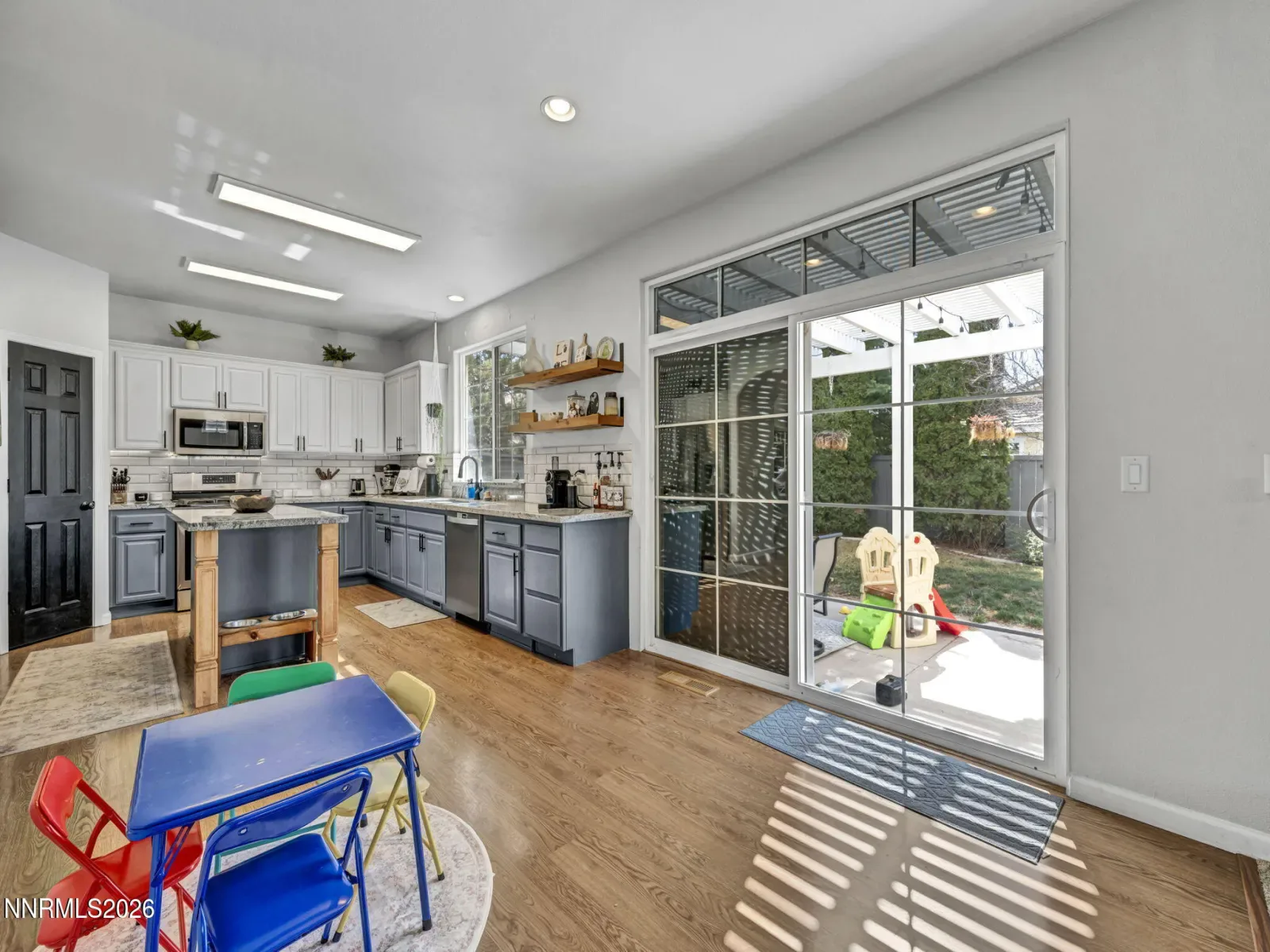 Beautifully updated 4-bedroom home on a premium corner lot just minutes from D’Andrea Golf Course, featuring soaring ceilings, an open layout, and mountain views. The modern kitchen features stainless steel appliances, generous counter space, a large pantry, and an island perfect for cooking or entertaining. The bright and airy living areas showcase high ceilings and abundant natural light. The main floor offers exceptional flexibility with a full bathroom and a private bedroom, ideal for guests or multigenerational living. Located near golf, shopping, dining, and everyday conveniences, this D’Andrea home offers comfort, space, and convenience in one of Sparks’ most desirable neighborhoods.