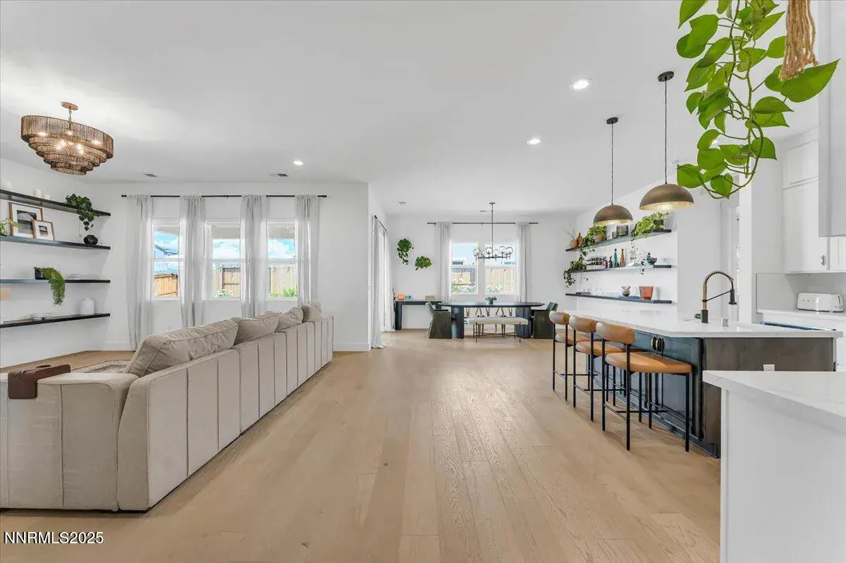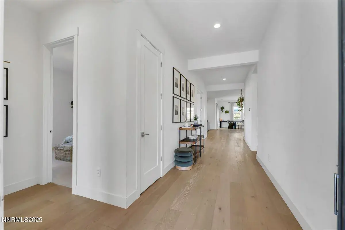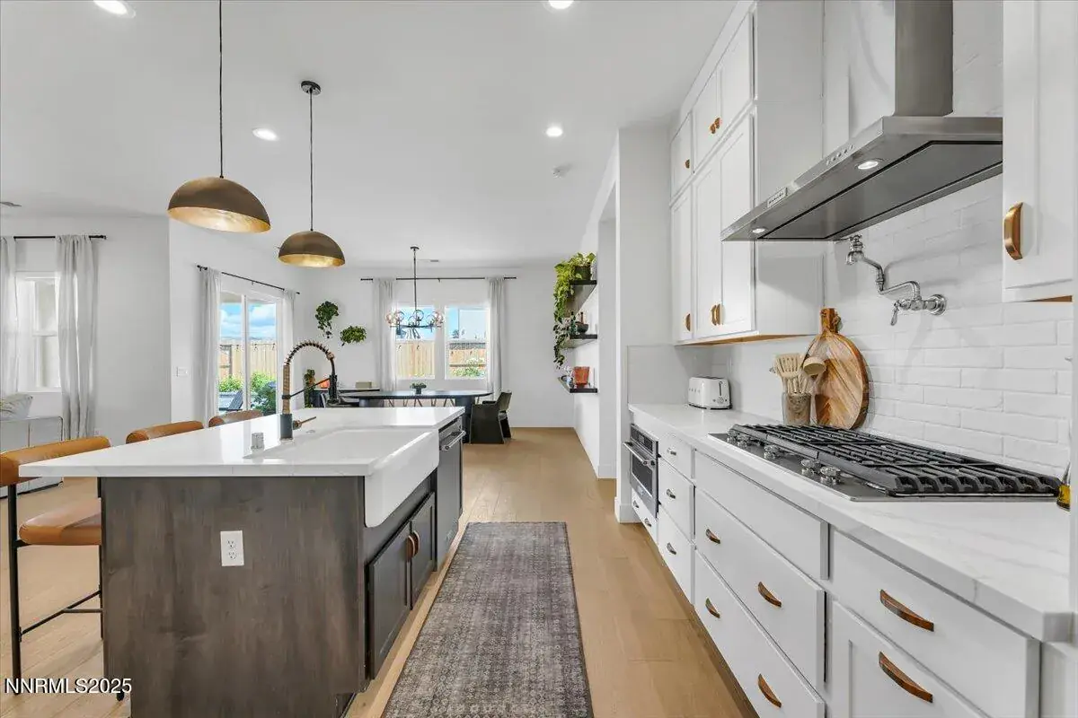 Welcome to a home that instantly feels right. Built in 2022 and sitting on a generous corner lot, this modern single-story beauty blends comfort, convenience, and style in one of Sparks’ most accessible neighborhoodsājust minutes from shopping, dining, and daily essentials. Step inside and picture your everyday life flowing effortlessly through wide hallways, warm engineered hardwood floors, and bright, sun-filled rooms. The heart of the home is the kind of kitchen everyone gathers inācomplete with a spacious island, sleek quartz counters, stainless steel appliances, wine fridge, and pot filler. Whether you’re hosting friends, cooking with family, or simply enjoying a quiet morning coffee, this space was designed to make life easy and enjoyable. With 3 bedrooms, 2.5 bathrooms, and two versatile bonus rooms, you’ll have space for work, hobbies, guests, or a cozy den. The dedicated laundry room with pedestal washer and dryer simplifies chores, while the oversized 3-car garage offers room for storage, gear, and more. Step outside and unwind in your private, low-maintenance backyardānew turf, blooming white roses, and space to relax without the upkeep. It’s the perfect extension of the home and an ideal spot for evening sunsets or weekend downtime. If you’re looking for something move-in ready, thoughtfully designed, and easy to love from the moment you walk in, this Sparks home is waiting for you. Come see it for yourselfāschedule your private showing today! All information is deemed reliable but is not guaranteed. Buyer and Buyer’s agent to verify all information.