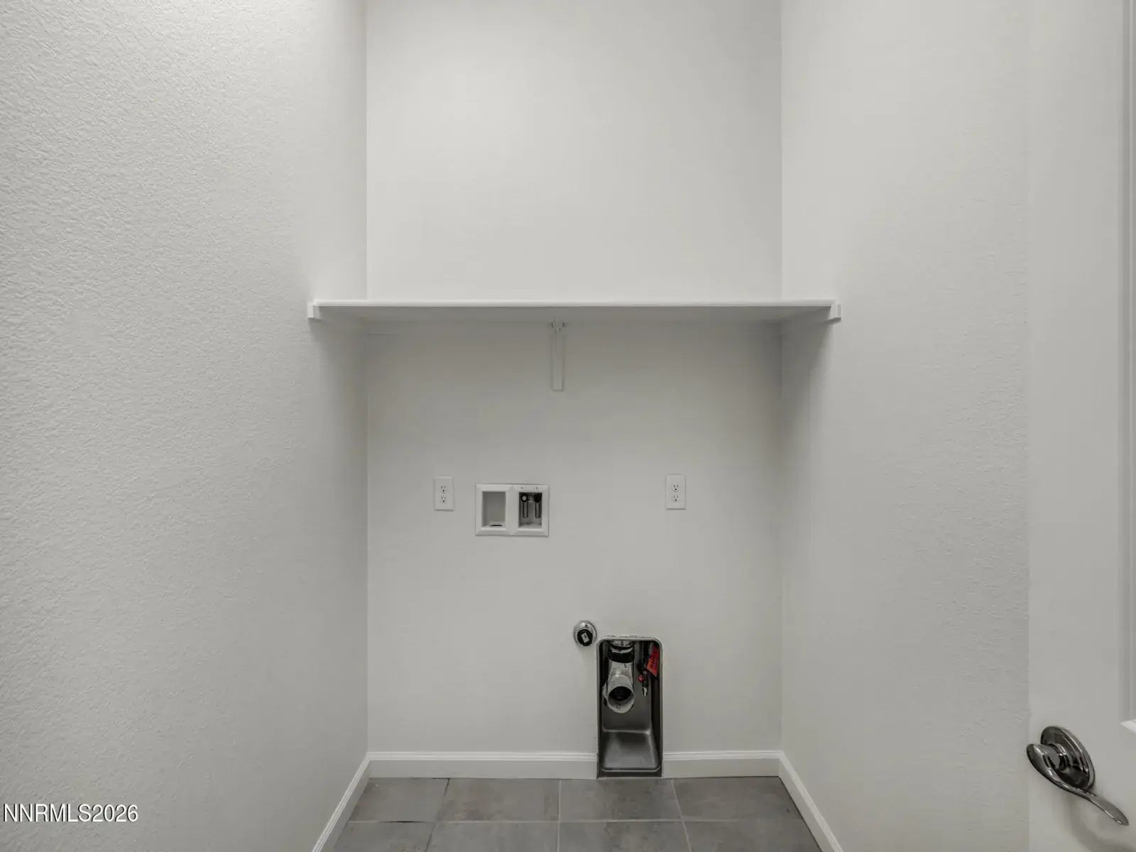 In Hall, Laundry Room, Shelves, Washer Hookup
