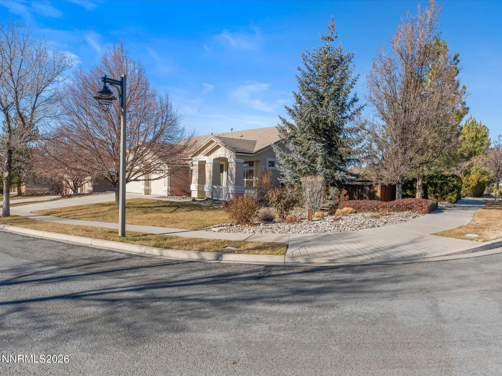 Meticulously maintained single-story home on a premium corner lot backing to open space in Wingfield Springs. The open layout with 10 foot ceilings and custom finishes offers comfortable, easy living with thoughtful upgrades throughout. The outdoor spaces feel like a private escape, featuring over $100,000 in professional landscaping, multiple paver patios, a wisteria-covered pergola, mature cherry, peach, plum, and quince trees, grapevines, strawberries, herb garden, fenced vegetable beds, peaceful water feature, and storage shed. The yard is spa-ready with 220V power and plumbing already in place. An oversized, finished 3-car garage provides ample space for vehicles, storage, and hobbies. Located in the Spanish Springs School District including Van Gorder Elementary and Sky Ranch Schools, with easy access to trails, parks, and recreation. Minutes to Golden Eagle Regional Park, Red Hawk Golf and Resort, and established trail systems including Wingfield Springs Trail, Wingfield Utility Corridor Trail, and Foothills Trail. A rare opportunity for privacy, lifestyle, and single-story living in a vibrant, well-kept community.