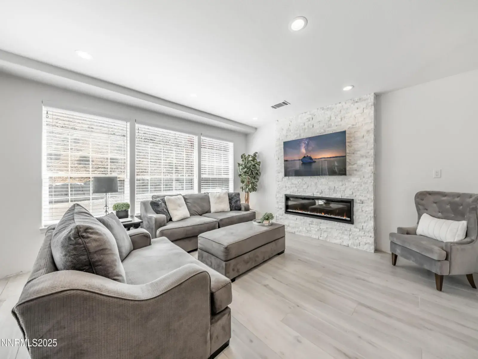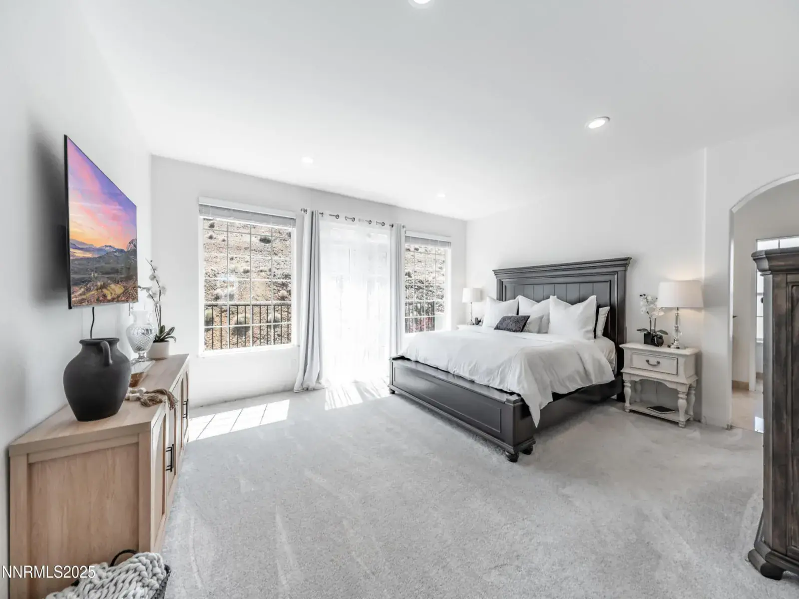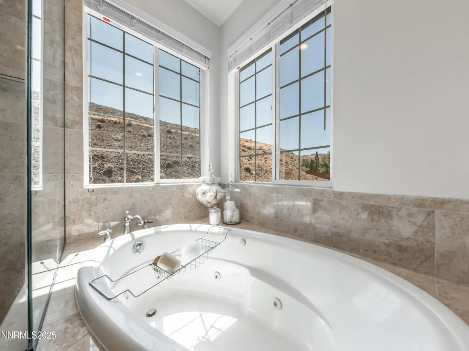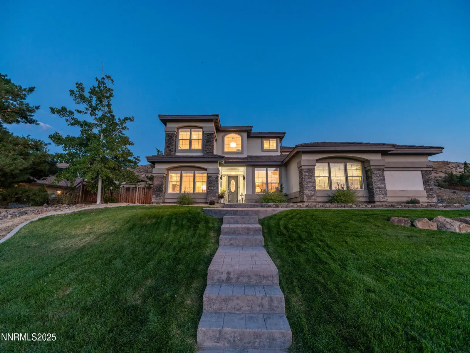 Perched above Wingfield Springs, this custom home offers stunning mountain, valley, and golf course views. Recently remodeled from top to bottom, it showcases modern finishes, light-filled living spaces, and seamless indoor-outdoor flow. The oversized garage, dedicated office space, and numerous upgrades throughout make this home as functional as it is beautiful. The interior features large-format waterproof and pet-proof porcelain tile imported from Spain, new appliances, downstairs junior suite and thoughtfully designed his-and-hers closets. The private backyard backs to open space, offering both tranquility and breathtaking scenery, while the cleared yard provides room for a pool or possible ADU. This property is truly the ideal blend of style, comfort, and Northern Nevada living.
