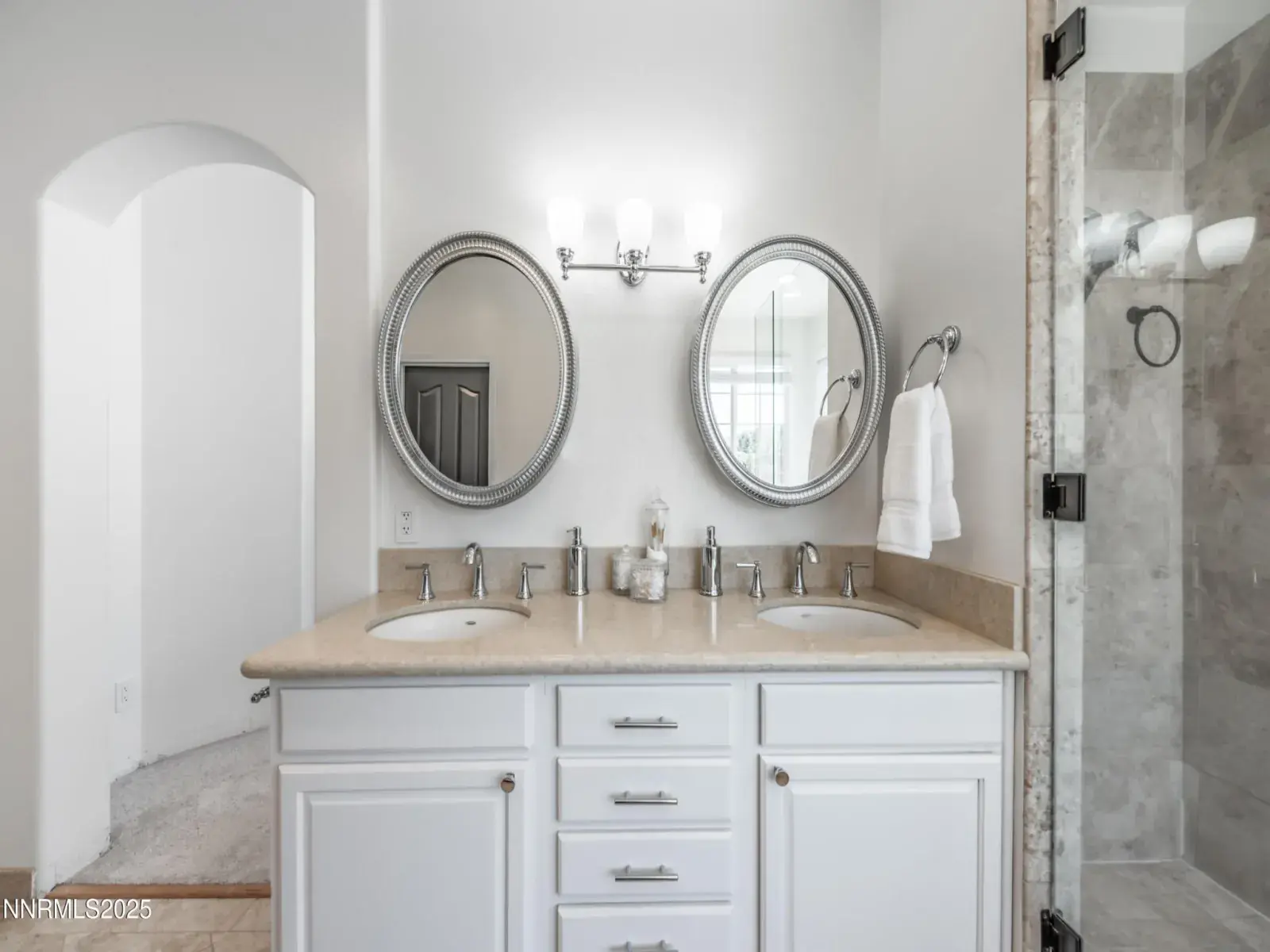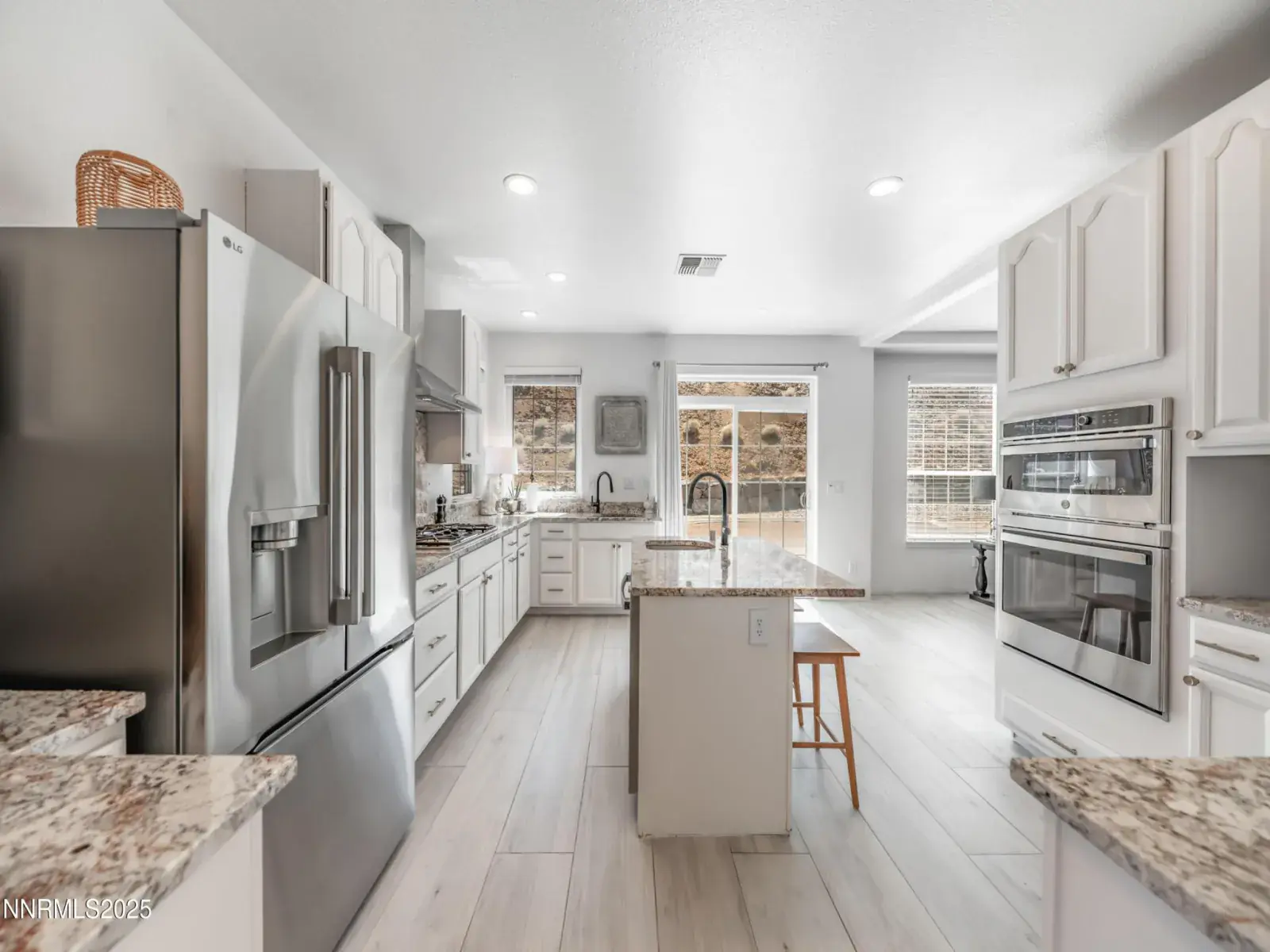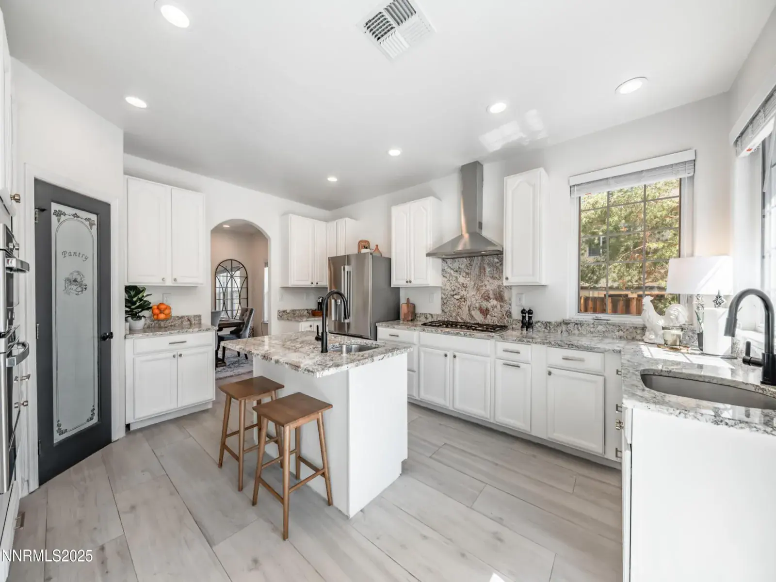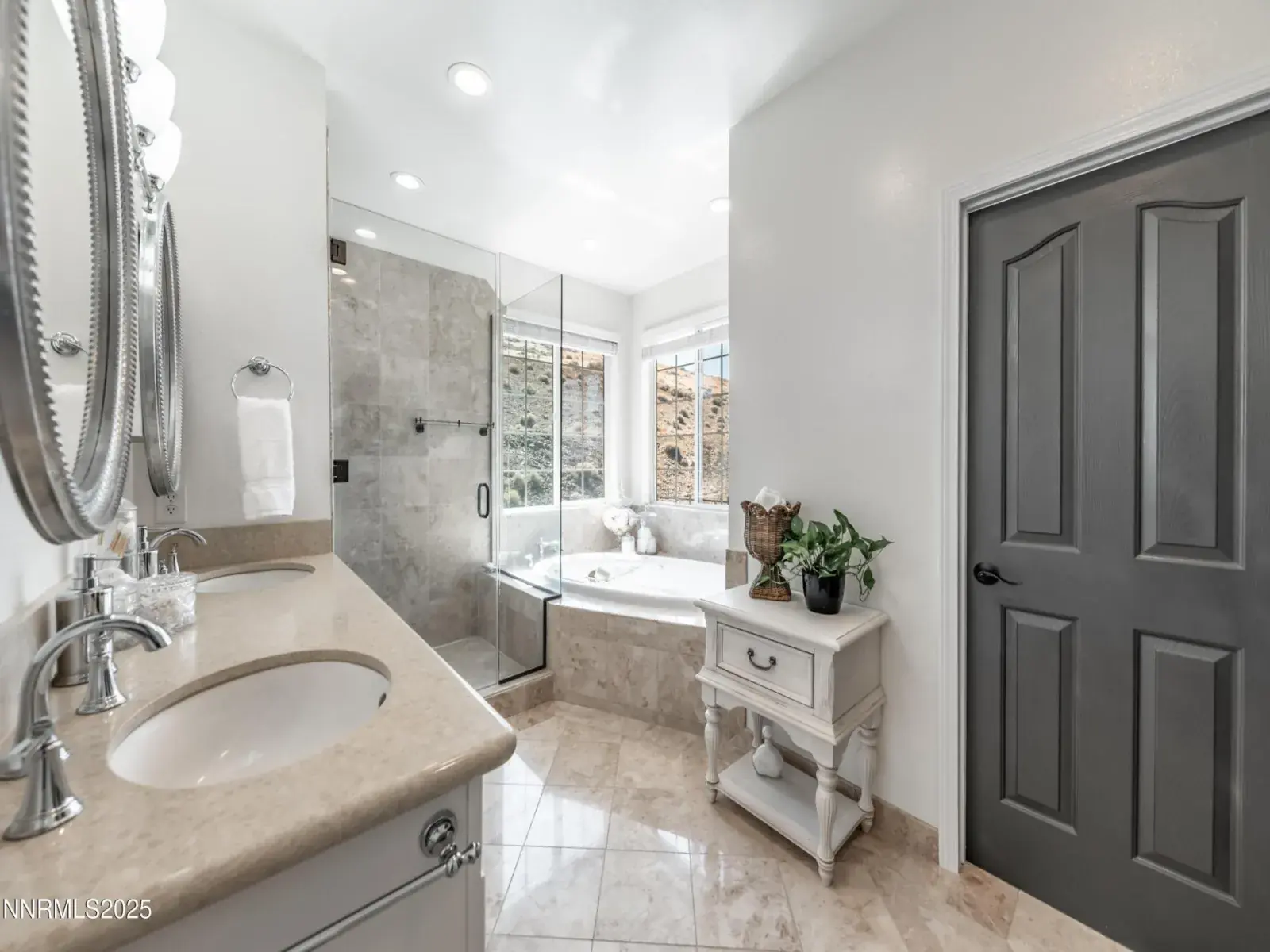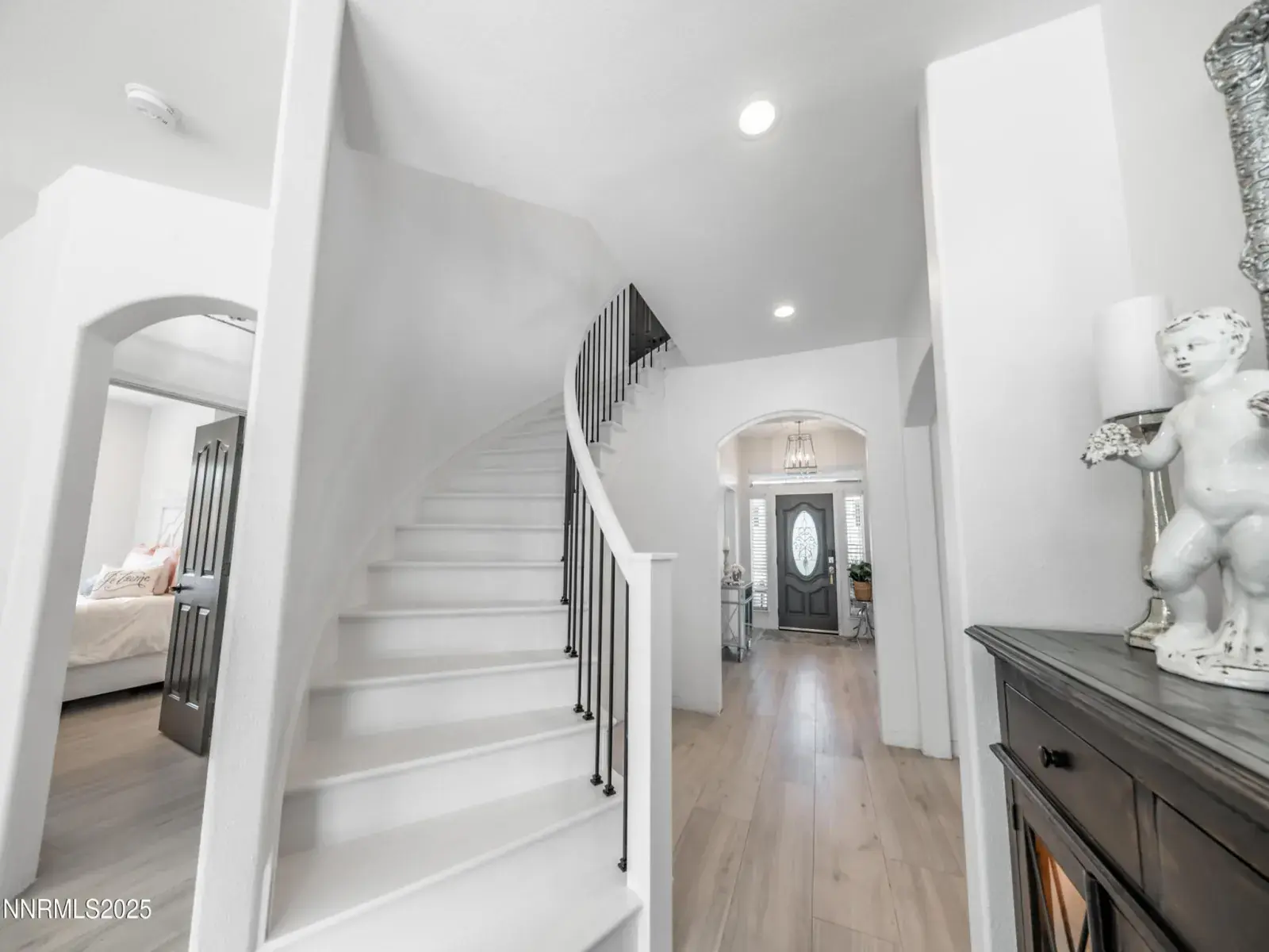 Perched above Wingfield Springs, this custom home offers stunning mountain, valley, and golf course views. Recently remodeled from top to bottom, it showcases modern finishes, light-filled living spaces, and seamless indoor-outdoor flow. The oversized garage, dedicated office space, and numerous upgrades throughout make this home as functional as it is beautiful. The interior features large-format waterproof and pet-proof porcelain tile imported from Spain, new appliances, downstairs junior suite and thoughtfully designed his-and-hers closets. The private backyard backs to open space, offering both tranquility and breathtaking scenery, while the cleared yard provides room for a pool or possible ADU. This property is truly the ideal blend of style, comfort, and Northern Nevada living.