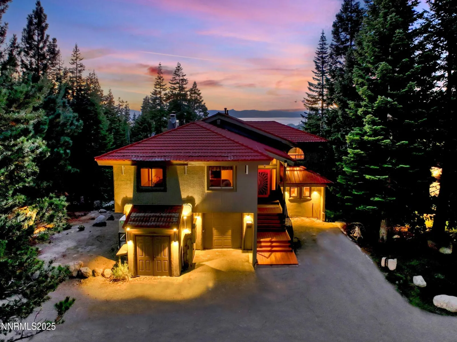 At the edge of Heavenly’s Boulder Lodge parking lot, where a discreet paved road vanishes into the forest, lies one of Lake Tahoe’s most private and extraordinary estates. Virtually unknown to the public, this rare compound is as secluded as they come—so hidden that most people don’t even know it exists. Behind a stone gate, the drive meanders nearly a mile through towering pines before revealing a setting unlike any other. Spanning over 3.2 acres across two parcels, the property encompasses three separate structures and borders endless National Forest land, with Edgewood Creek flowing nearby and the Tahoe Rim Trail just steps away. While wrapped in privacy, the location is uniquely central—just below Heavenly Ski Resort (with potential ski-in access from out-of-bounds terrain) and minutes to the lake, Edgewood Golf Course, and Stateline’s amenities. The centerpiece is the main residence, a three-story, 4,000+ sq. ft. architectural retreat with commanding lake views. Its great room is a showstopper, with vaulted ceilings, exposed beams enhanced by backlighting, bamboo floors, and a massive stone fireplace—all framing sweeping panoramas of Tahoe. Four bedrooms (including two suites) and four full baths are complemented by a mid-level family room, three fireplaces, and a versatile lower-level office with custom built-ins that could easily transition into a bedroom, theater, or gaming space. A series of rear decks stretch across the rear of the property, designed for entertaining against the backdrop of Tahoe sunsets. The detached ~1,200 sq. ft. guest house offers complete independence with its own two-car garage, two bedrooms (one ensuite), two full baths, and a full kitchen, dining area, and living room. Multiple decks invite guests to enjoy the views in privacy. A third structure houses a ~1,000 sq. ft. caretaker’s apartment with one bedroom suite, full kitchen, dining, and living areas. Covered stairs lead to its entry, while the unit itself is perched above a five-car garage—perfect for car collections, boats, or Tahoe’s essential toys. All three dwellings feature recently painted stucco exteriors, durable metal roofs, and a design that emphasizes longevity and low maintenance. Expansive asphalt parking areas provide ample space for RVs, trailers, and gatherings of any size. This is not just a property—it’s a legacy compound, a private hideaway of scale and stature rarely seen in Lake Tahoe. 130-140 Granite Crest stands as a once-in-a-generation opportunity to own a true hidden estate in the Basin.