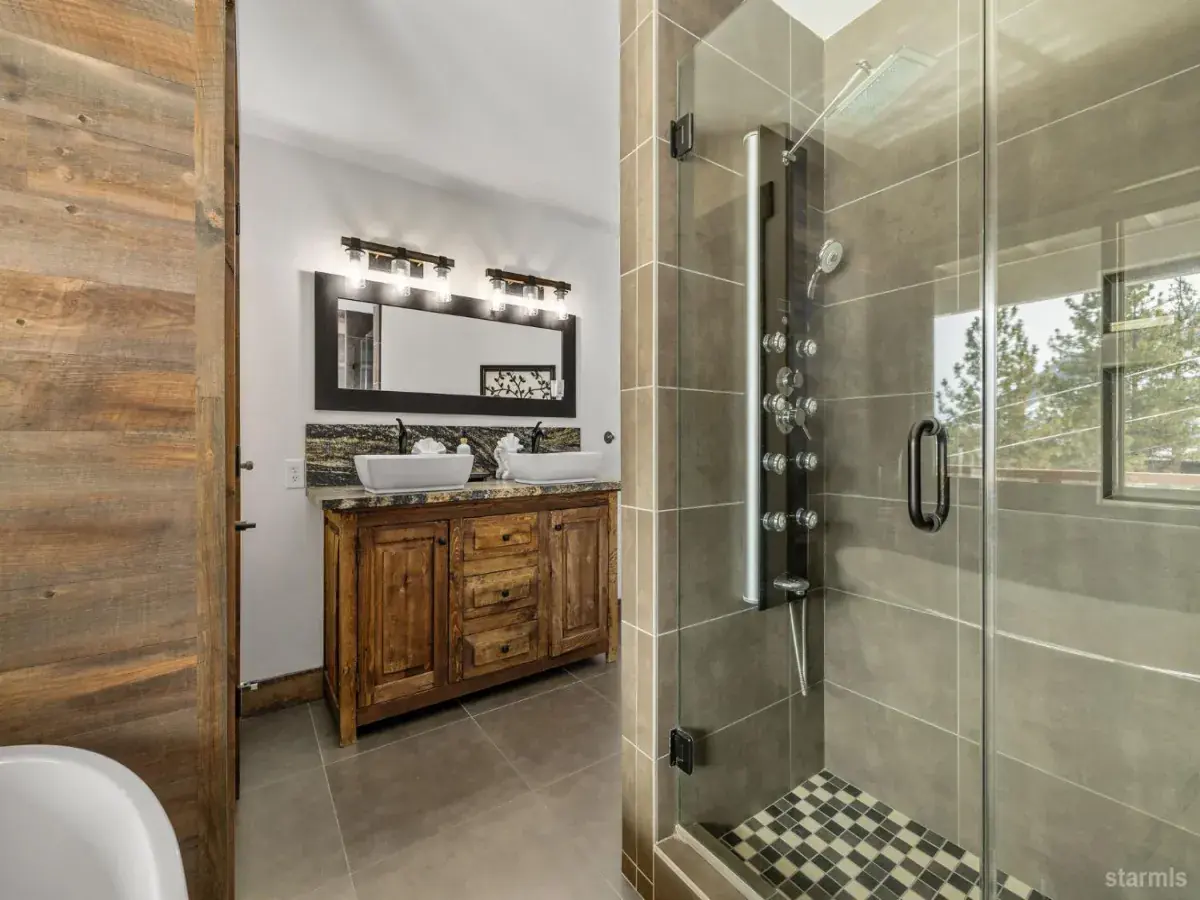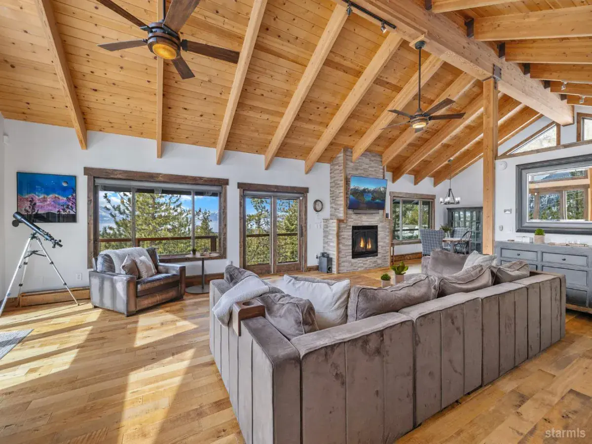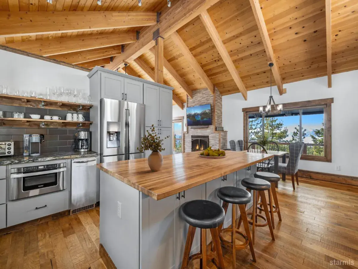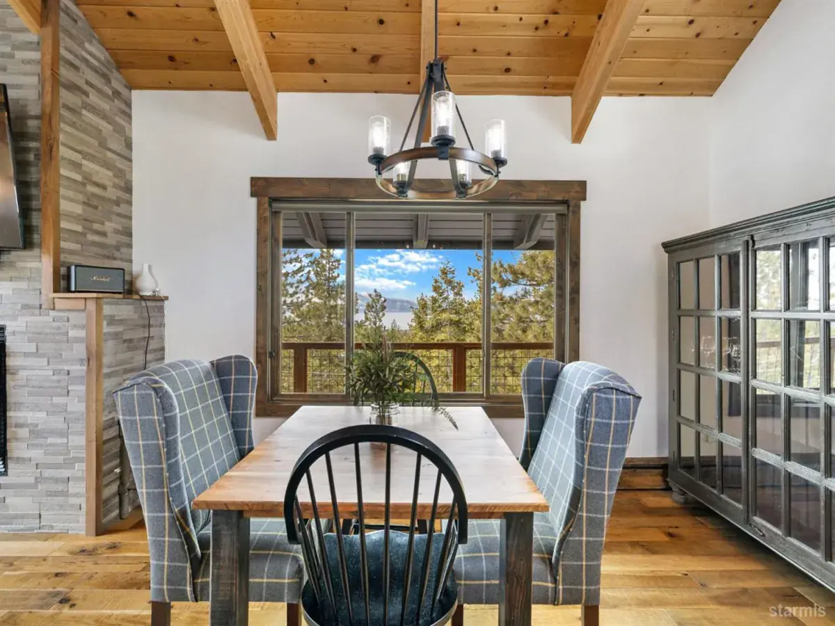 Expansive Lake Tahoe views define this luxurious mountain retreat, where modern comfort meets natural beauty. Nestled among towering pines, this stunning home offers a perfect balance of serenity and conveniencejust minutes from Heavenly Ski Resort and the vibrant energy of South Lake Tahoe. From the moment you step inside, the panoramic lake and mountain views take center stage. A plethora of windows frame the water’s endless blue, bringing the outdoors in, while soaring wood-beamed ceilings and premium hardwood flooring create an inviting warmth. The spacious living area is anchored by a stone fireplace, offering the perfect setting for cozy winter evenings or relaxed summer nights. Just beyond, an expansive redwood deck provides a breathtaking vantage point to watch the sun dip behind the peaks, casting golden reflections across the lake.The gourmet kitchen is designed for both style and function, featuring granite countertops, stainless steel appliances, a gas range, and a copper farmhouse sink. A walnut-topped island serves as the heart of the space, perfect for morning coffee, shared meals, or aprs-ski gatherings.Every detail of the home is crafted for comfort and effortless living. The upper level is designed for entertaining, with open-concept living and seamless indoor-outdoor flow. The middle floor offers a private retreat, with well-appointed bedrooms and peaceful spaces to unwind. The lower level provides additional versatility, featuring a guest suite and a game room built for endless enjoyment.Thoughtfully integrated smart-home upgrades enhance both security and convenience. Remote-controlled WiFi-enabled thermostats ensure a perfect indoor climate year-round, while a full ADT security system with Nest cameras offers peace of mind whether you’re home or away. Noise monitoring technology blends seamlessly into the space, and bear boxes provide a smart solution for mountain living.Located just 5-7 minutes from dining, shopping, and outdoor adventures, this home offers the best of both worldsseclusion within nature and easy access to South Lake Tahoe’s premier amenities. Whether it’s a full-time residence, a seasonal getaway, or a high-performing vacation rental, this home is ready for its next chapter.Wake up to the lake. Breathe in the mountain air. Experience Tahoe at its finest.