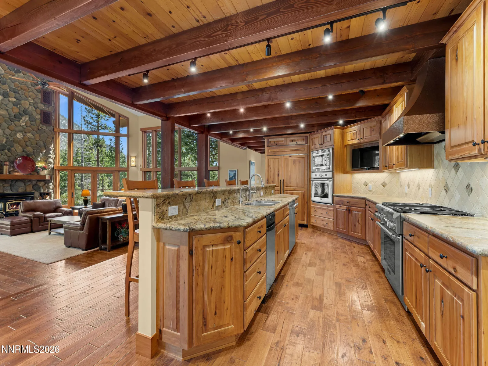 Widely regarded as one of the premier homes in the prestigious Granite Springs neighborhood, this property delivers an unmistakable “wow factor” from the moment you step inside. Located at the end of a cul-de-sac and bordering miles of national forest, offering sweeping mountain views, a rare level lot, and a desirable low-elevation setting – this home will check just about every box. As you enter the home the soaring ceilings, with picture windows to match, allow the views and sunlight to flood the living space. The updated kitchen, dining room, oversized two-car-garage, powder room, several closets and pantries and a large wraparound deck – perfect for soaking in the stunning forest setting – complete this level. Upstairs, there is an additional living space, a lovely primary suite with a deck, walk-in-closet and steam shower, along with two more bedrooms, bathrooms, and a conveniently located laundry room just down the hall. Additionally, this just under two acre parcel has over 6,000 square feet of additional coverage available, giving this property so much potential now or in the future. With trails out the door and just minutes to world-class-skiing, the casinos, Edgewood golf course and all that South Shore has to offer – one step inside and you’ll want to call this home!