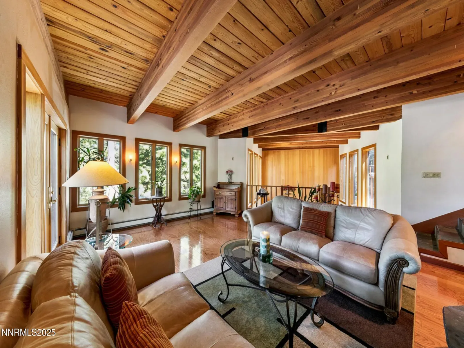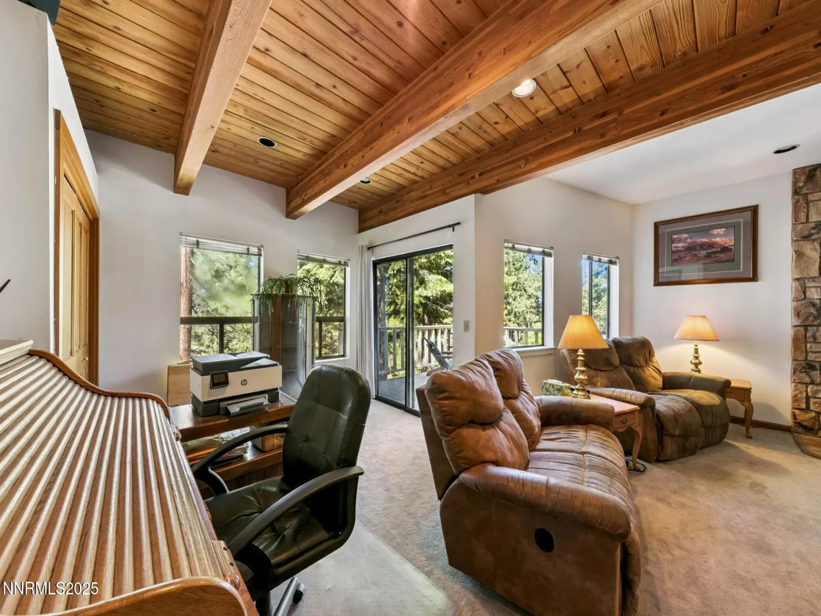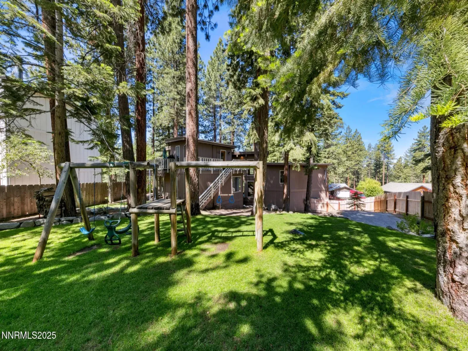 Embrace life in a coveted neighborhood where stunning mountain views from expansive windows greet you each morning in sun-filled rooms designed to maximize the surrounding scenery. This home is nestled on a beautifully landscaped .34-acre lot with 2996 sq. ft. of living space. The peaceful and scenic backyard is a true refuge. With 4 spacious bedrooms, 2.5 attractively appointed bathrooms, and attached two car garage, this home offers very versatile family living. Upon entry you’ll be greeted by soaring open beam ceilings along with abundant natural light from the many large picture windows showcasing expansive mountain views. Enjoy the warmth and ambiance of the stone veneer fireplace in the heart of the living room and the standalone gas fireplace in the family room. The home has been updated with the perfect blend of Alpine charm and modern comfort. Step into the heart of the home with a spacious and attractively updated kitchen designed for family living and entertainment along with ample storage and a separate pantry. Featuring modern stainless-steel appliances, generous counter space, stylish cabinetry, and a large center island perfect for gatherings. The spacious primary suite includes a walk-in closet, jacuzzi tub, and separate shower. The adjoining outdoor deck is also wired for a large jacuzzi. Situated in a neighborhood that has Short Term Rental permit possibilities. Perfectly positioned near Heavenly Ski Resort, Lake Tahoe Beaches, restaurants and recreation areas. Shows pride of ownership and timeless appeal.