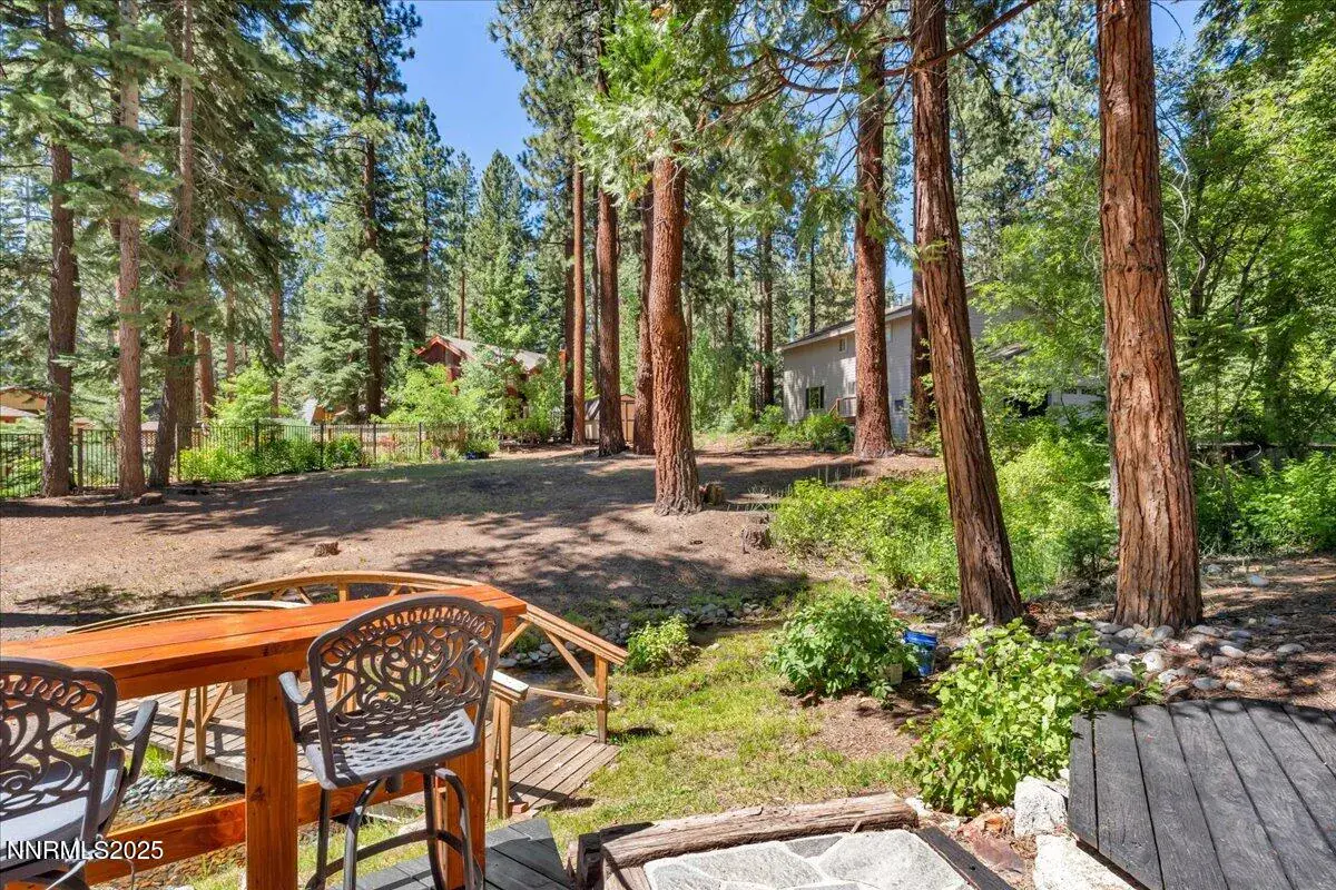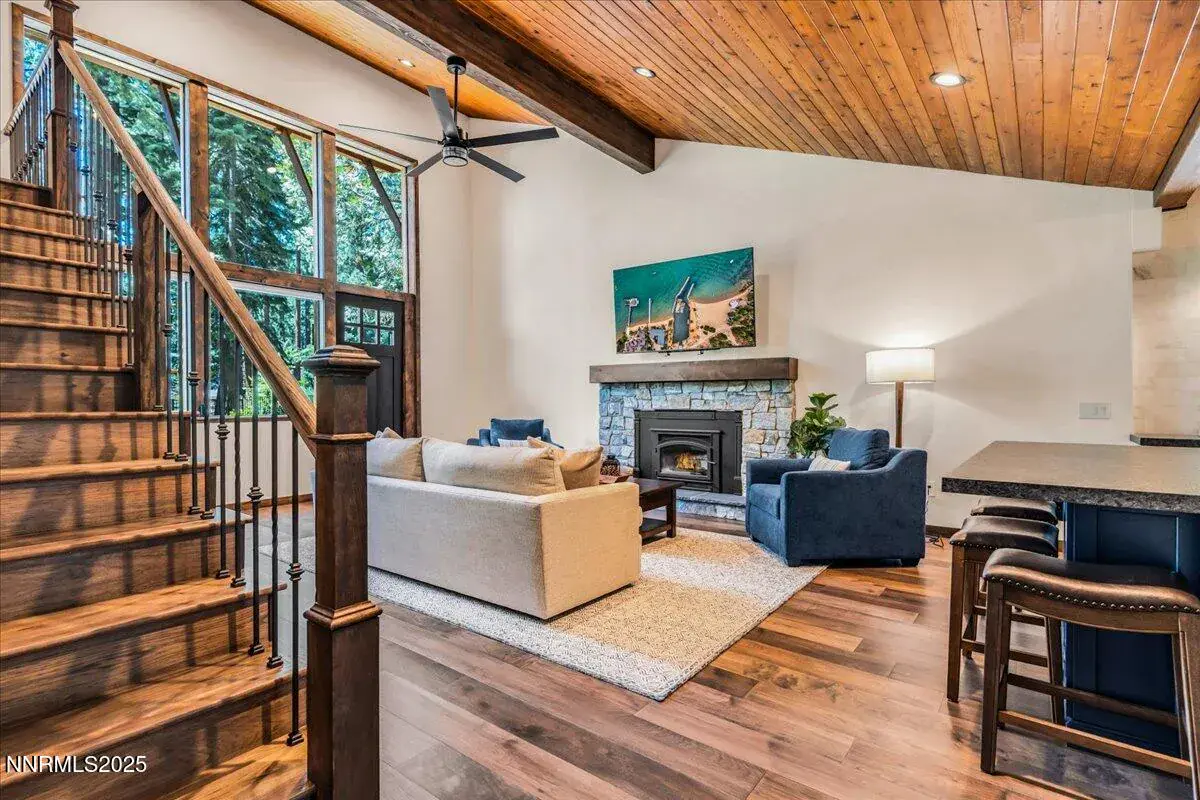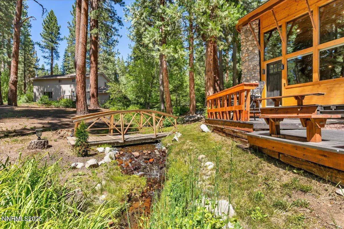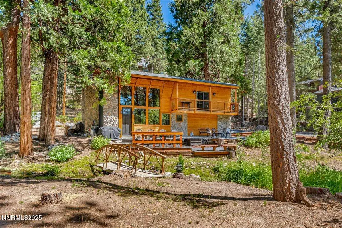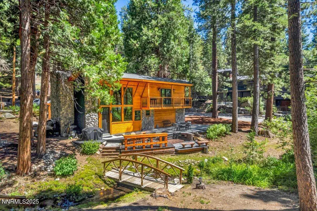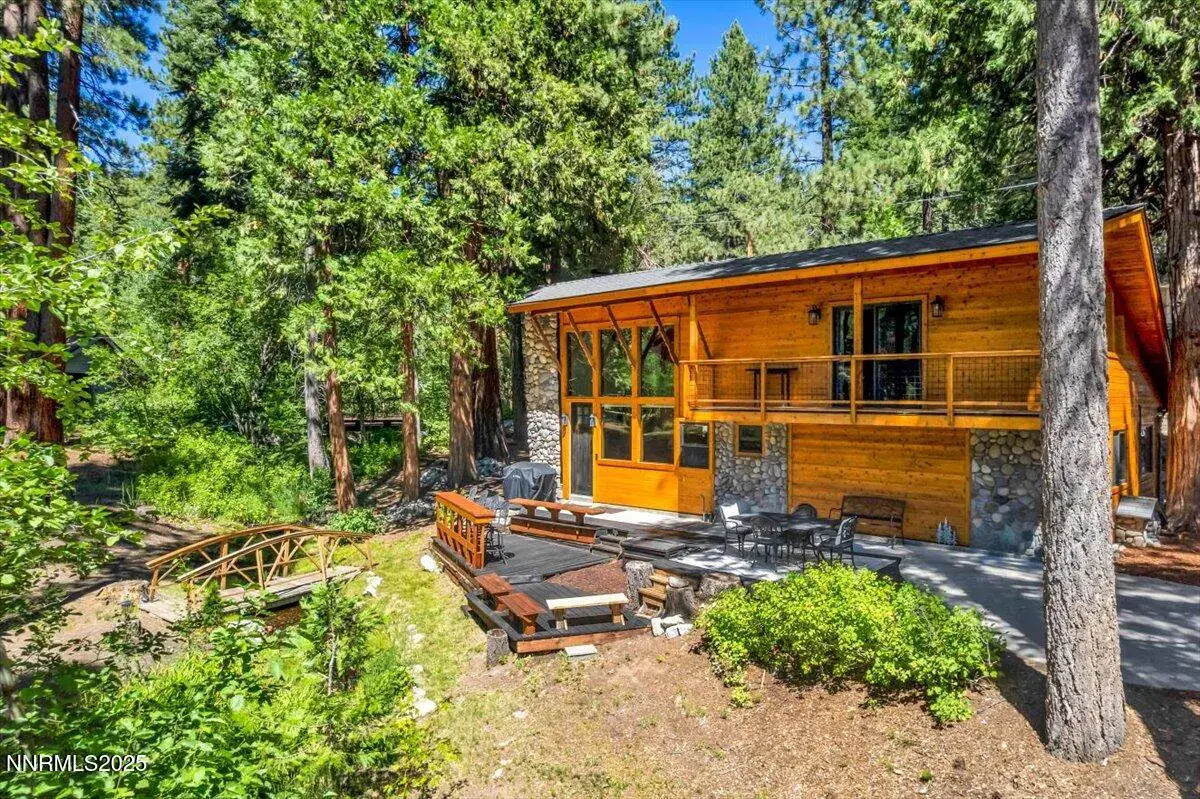 Experience the essence of Tahoe living at 370 Summit Drive, a truly unique and exquisitely maintained mountain modern retreat nestled in one of Lake Tahoe’s most desirable communities, Middle Kingsbury. Step onto the deck and be greeted by the tranquil sounds of Burke Creek flowing just beyond your front door. This thoughtfully renovated , fully furnished, move-in-ready home offers a serene setting that’s hard to find, especially on a generous 0.54-acre lot. This peaceful creekside ambiance creates the perfect backdrop for relaxation. Renovations were completed in 2025. Wrapped in warm cedar and accented with natural river rock, this home makes a striking architectural statement. Inside, discover 2 bedrooms, 2.5 bathrooms, and a seamless blend of modern luxury and rustic elegance. Soaring vaulted cedar plank ceilings and an expansive glass wall flood the open-concept living space with natural light, bringing the outdoors in, while central air conditioning ensures year-round comfort. A granite stone wood burning fireplace serves as the centerpiece of the living area, seamlessly complementing the gourmet kitchen featuring leathered granite countertops, soft close cabinetry, a hand-selected marble backsplash, a large island with seating for four, top of the line appliances, and high-end finishes throughout. In addition, engineered hickory hardwood floors were carefully selected for their exceptional durability and timeless quality. The primary suite offers a walk-in closet and a beautifully appointed ensuite bath, featuring dual sinks and a spacious shower with a natural stone floor that has been artfully designed bringing the beauty of the outdoors inside. Upstairs, the guest suite provides comfort and privacy with its own ensuite bathroom and a sliding glass door that opens to a private deck overlooking Burke Creek, an ideal retreat for visitors or extended stays. This home boasts a brand-new furnace and air conditioning system, a tankless water heater, a new roof, and completely updated electrical wiring and plumbing. Modern smart-home features include five Ring security cameras and a Nest thermostat for comfort and peace of mind. Tucked away on a peaceful cul-de-sac, the property offers generous parking and effortless access to the natural beauty that surrounds it with miles of hiking and biking trails just steps away, including the popular Stinger Trail. A storage shed located at the far north corner of the property offers convenient space for yard tools, outdoor equipment, and additional storage needs. Beyond the property’s boundaries, you’ll have access to a wealth of year-round recreational activities. Explore nearby world-class ski resorts, or enjoy thrilling water sports on the pristine waters of Lake Tahoe. It’s the perfect retreat after a day of outdoor adventures. Whether you’re looking for a private mountain escape or a lucrative rental investment, this creekside luxury retreat is the opportunity you’ve been waiting for. Schedule your private showing today and experience Tahoe living at its finest.