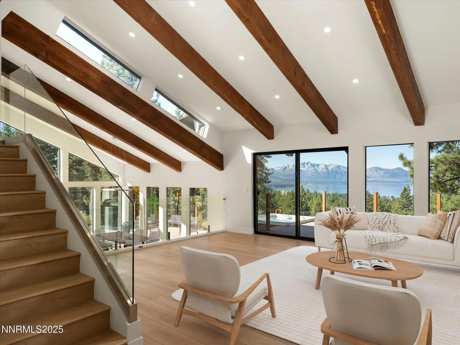 Experience refined mountain luxury at 396 Sherwood Drive, a fully renovated 5-bedroom, 5-bathroom residence spanning 4,600 square feet in the prestigious Mid-Kingsbury neighborhood. Perfectly positioned to capture unobstructed, panoramic views of Lake Tahoe, this exceptional home blends contemporary elegance with timeless alpine warmth. At the heart of the home, a designer chef’s kitchen showcases a grand island overlooking the lake, ideal for both elevated entertaining and relaxed family living. Expansive open-concept living and dining areas flow seamlessly to a spectacular 1,500-square-foot lakeview deck, offering the ultimate in indoor-outdoor living and breathtaking sunset panoramas. The home features two spacious living rooms—one designed to take full advantage of the lake views, the other offering a cozy, private retreat perfect for movie nights or gatherings. Every detail reflects thoughtful craftsmanship and modern sophistication throughout. An oversized two-car garage provides ample storage for vehicles and Tahoe toys, while multiple en suite bedrooms ensure comfort and privacy for family and guests alike. Ideally located just 3 miles from the Nevada side of Heavenly Ski Resort and 2 miles from the casinos and South Lake Tahoe’s vibrant nightlife and dining, this home offers both tranquility and convenience. Discover privacy, elegance, and awe-inspiring natural beauty from one of Kingsbury’s most desirable addresses. At 396 Sherwood Drive, every day feels like a private retreat above the crystal waters of Lake Tahoe.