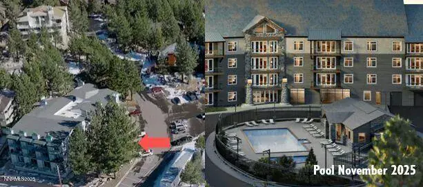 WHAT A LOCATION! This small condo packs a big punch located feet from the newly, nearly constructed, year-round POSH community pool and spa (projected finish November 2025.) Wonderful views from the living room and patio deck of Heavenly Valley Sky Resort and THE PEAK pool, the multi-million-dollar development and most expensive expansion in the Upper Kingsbury area. Enjoy a skiers paradise featuring the Heavenly Valley Ski Resort Stagecoach entrance walking distance away. Hike Heavenly in the summer taking in its natural beauty. Shuttle services are available throughout the year. Make this your winter and summer paradise.