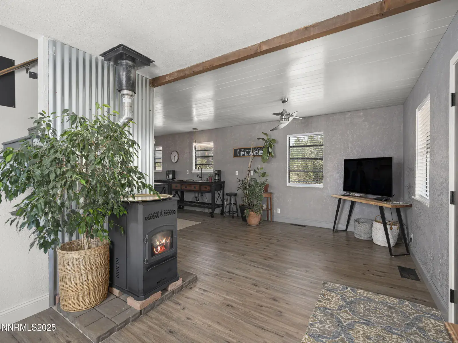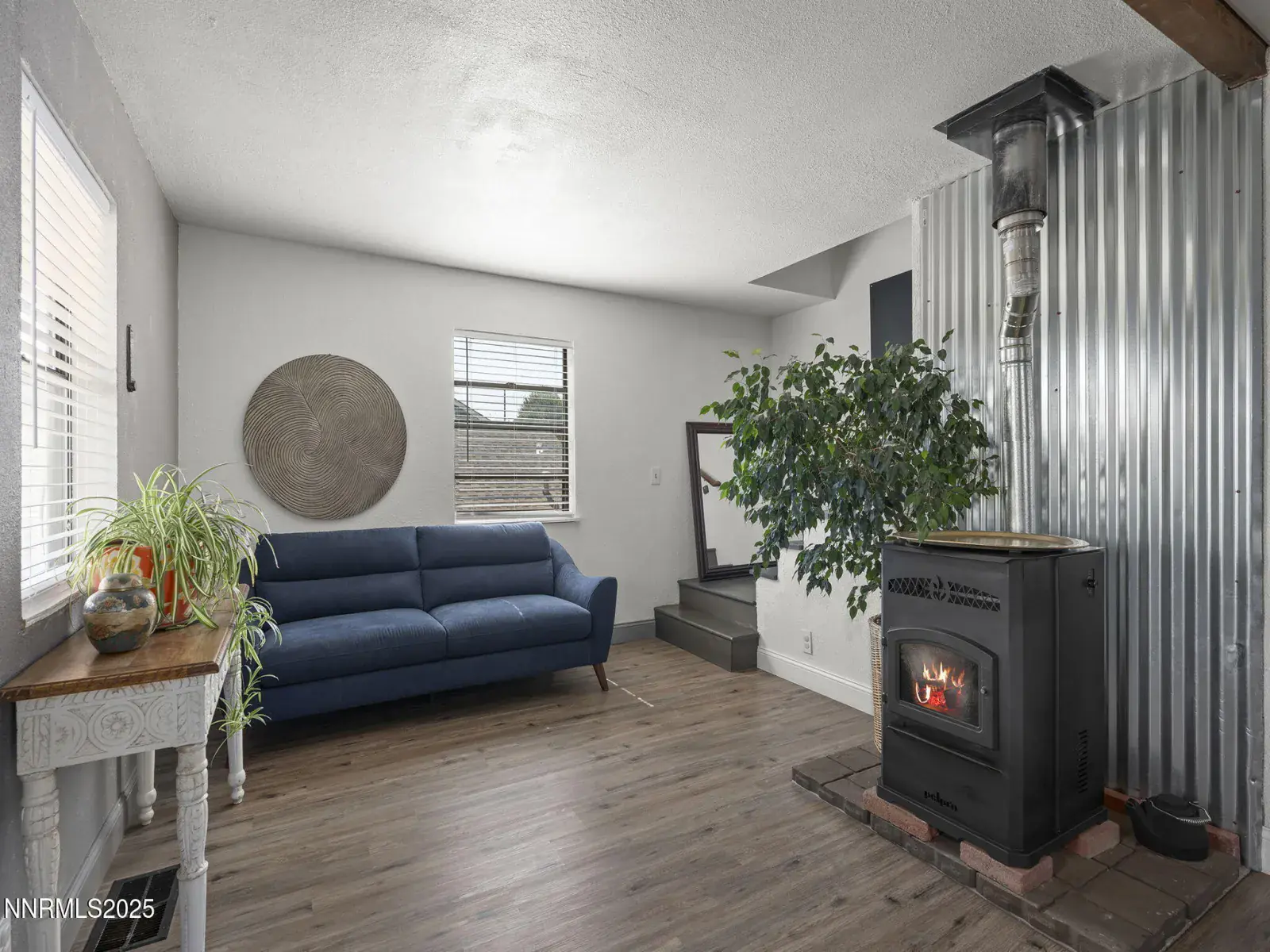 The pellet stove downstairs and the wood burning stove in the primary bedroom upstairs, keep the house toasty warm. However, if you’d like to install a furnace, the duct work is in.