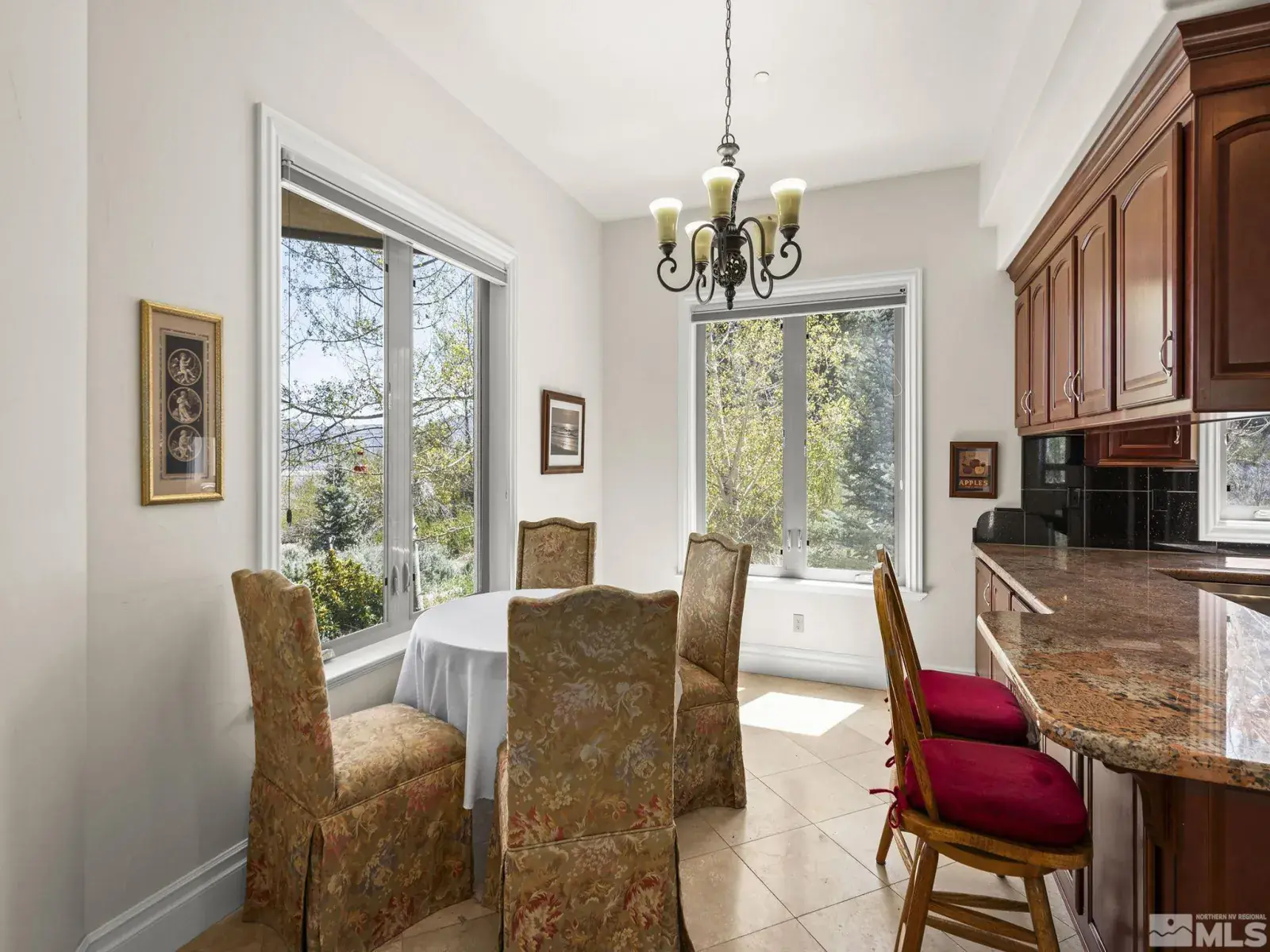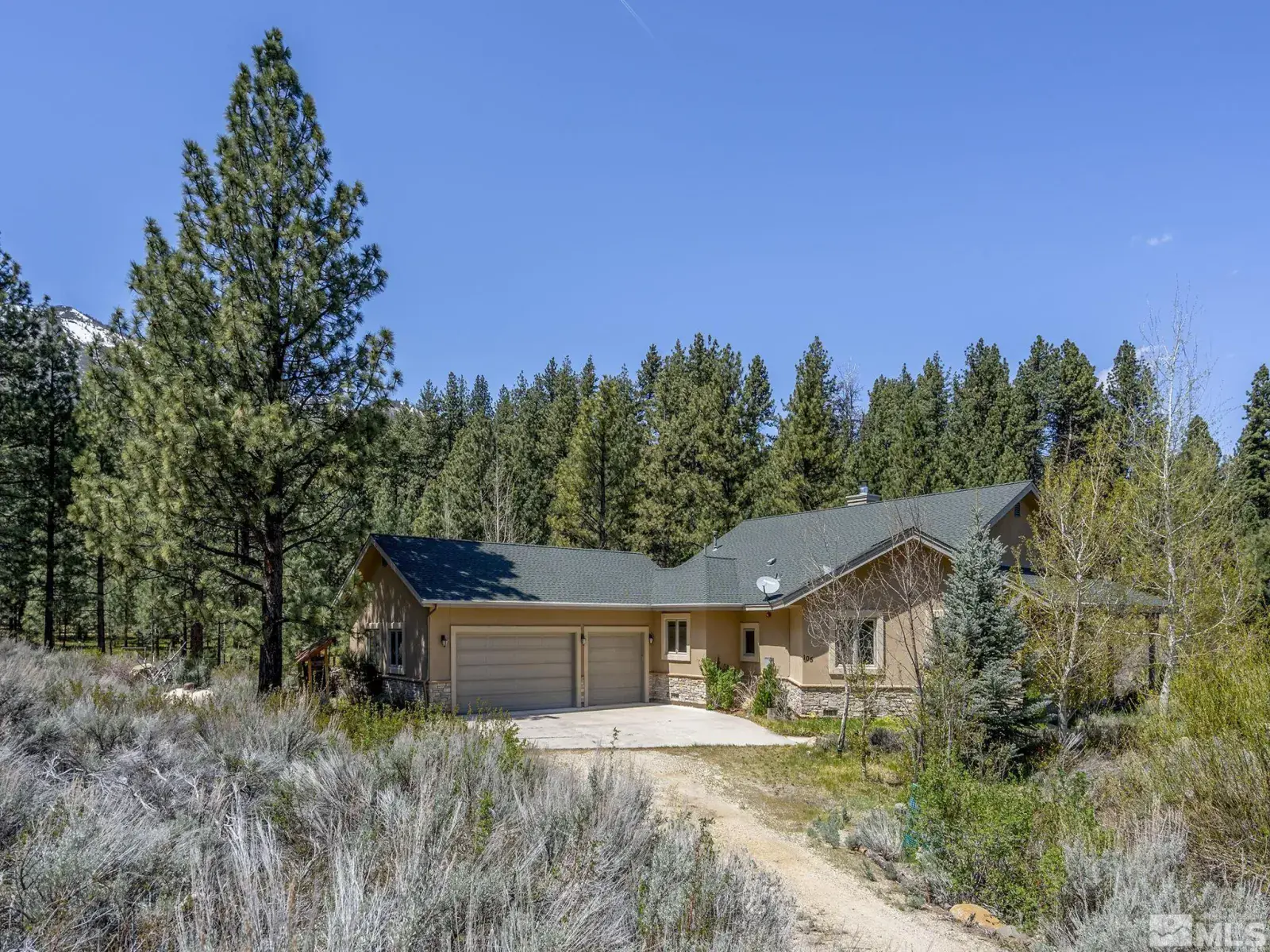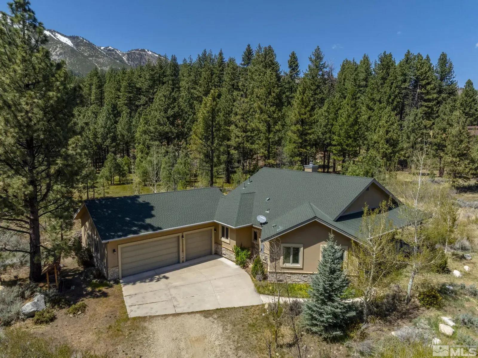 Nestled on 2.7 private acres at the base of Slide Mountain, this stunning custom home offers unmatched views and tranquility. Expansive picture windows frame breathtaking mountain peaks and serene snowfall, all from the comfort of your living room beside a cozy fireplace. Enjoy morning coffee in the breakfast nook while taking in views of Washoe Lake. Surrounded by mature trees and the peaceful sounds of nature, the outdoor patio is the perfect retreat to unwind and listen to the breeze in the trees., The home features two spacious bedrooms, a dedicated office, and an open-concept floor plan ideal for entertaining. Rich wood floors, custom built-ins, wood ceiling beams, and 8-foot wood interior doors create a warm, grounded aesthetic that perfectly complements the forested landscape. A 4-car garage offers plenty of space for all your needs. It offers the convenience of a little more than a stone’s throw from Davis Creek Park, and easy access to Reno and Carson City. A rare opportunity to own a slice of Sierra Nevada beauty! Please do not park on the road. Park on the driveway or outside the gate on Old 395.