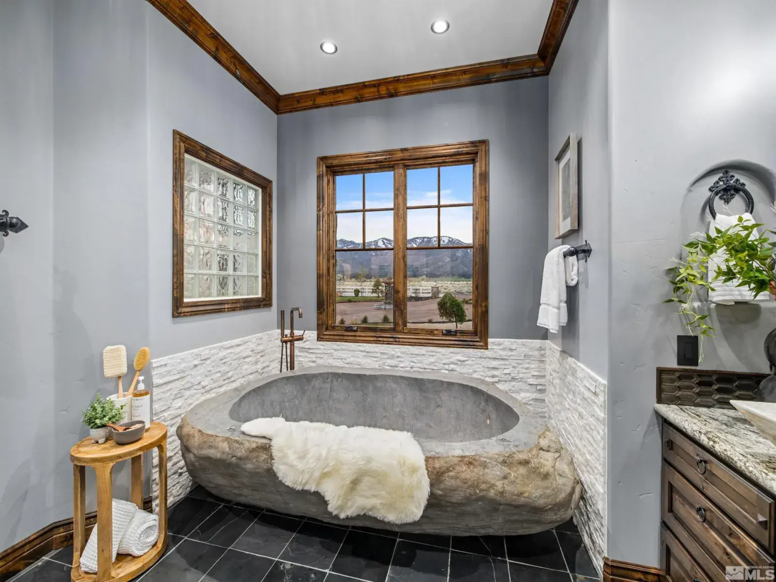 Proudly anchored on 5.33 acres of private water-ski lake and gated community, Valley Lake Estate is a testament to those who live a life free of constraints. Its architecture is bold, seductive, and strong, just like the 360-degree mountain and valley floor views. Security system, private well, and a 7-bay garage with car charger offer flexibility while seamless outdoor access draws you to an entertaining area with fireplace, workshop, guest quarters, and views as far as the eye can see., The Interior Floor-to-ceiling windows procure a sense of limitless natural light flowing throughout the 5,383 plus square feet of single-level living space. Stone, wood, and metal complement the well-appointed five bedrooms, 5.5 baths, and three fireplaces. An open floor plan, home theater, library, and formal dining area, enhance the inviting and elegant feel of this estate. Culinary Space Functionality and creativity are seamlessly integrated with caterer’s pantry, 2 dishwashers, and perks fit for a chef. Or, simply dine with a full kitchen, indoor/outdoor sound system, and Washoe Valley’s legendary sunsets. Primary Suite Your private haven beckons you to unwind in the solid carved boulder soaking tub imported from Bali, fireplace, and spectacular views. Dual walk-in closets and direct outdoor access will find you sipping your morning coffee in peace and serenity. Location: Washoe Valley’s rich old-west heritage blends with modern conveniences. Folks live here to enjoy open space; it’s where a handshake still means something. Perfectly located between Reno and Nevada’s state capital, savor spectacular mountain and valley views for as far as the eye can see. Just 17 minutes from historic downtown Carson City, brimming with shopping, wine walks, a youthful vibe, and even closer to golf, plus thousands of miles of protected open land to discover. A 30-minute drive delivers you to Reno International Airport with non-stop flights to San Francisco and JFK, or Reno’s festivals, philharmonic, dining, and technology-driven medical facilities. Or, spend the day at Lake Tahoe’s crystal waters, renowned ski resorts, and year-round outdoor activities. Nevada’s attractive tax advantages help preserve your financial legacy now and for future generations. No wonder the affluent are drawn to Carson Valley. Sky Villa is ready for an astute buyer who seeks harmony, uniqueness, and your private haven.