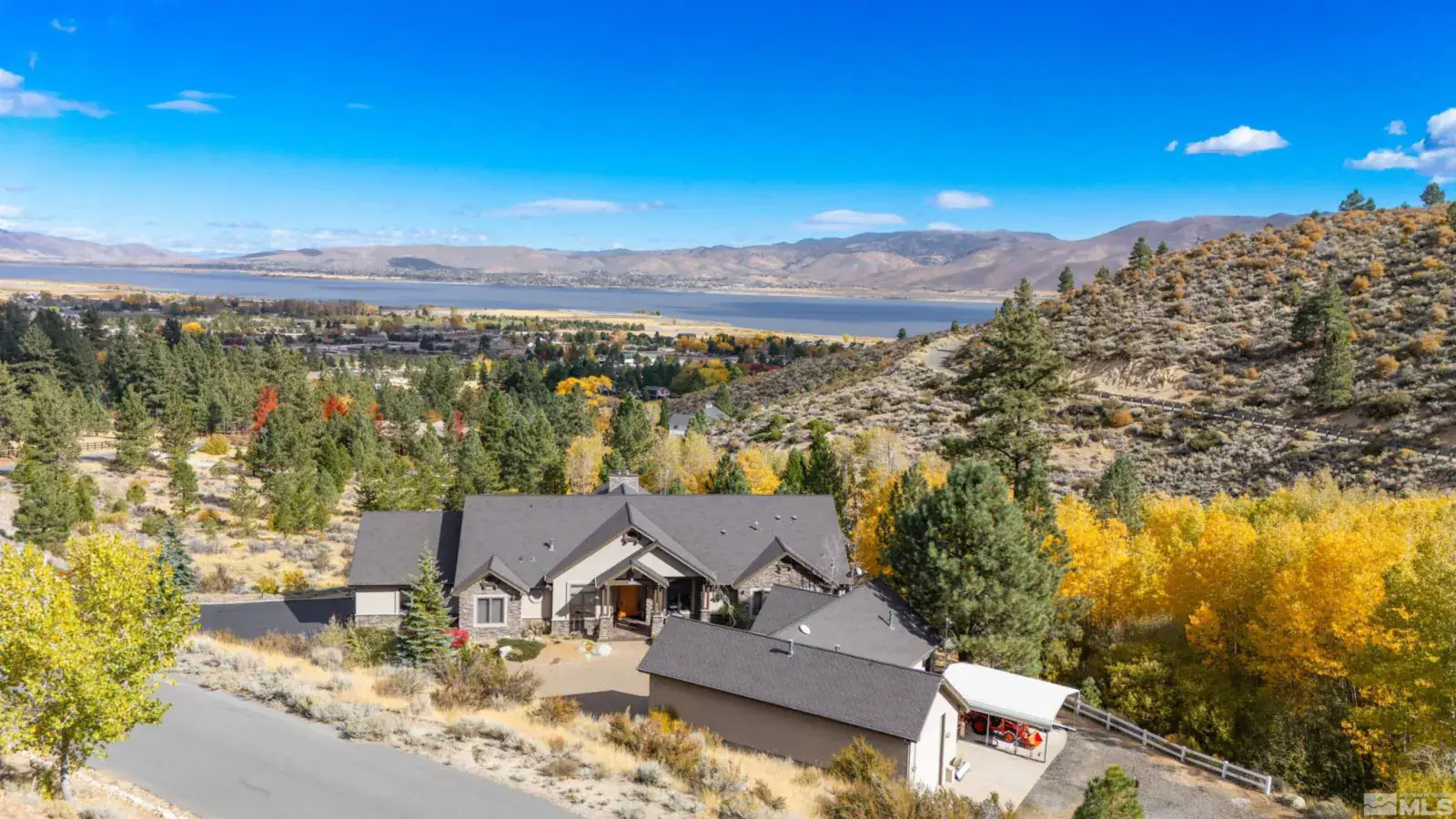 This beautifully situated custom home with views from every room is tucked into the mountain overlooking the majestic Washoe Valley and lake. The eastern property border is a stand of old growth Aspens and a small creek.  Easy access to shopping in Carson City and just minutes from Toiyabe Golf Club. Knotty Alder cabinets with Brazilian cherry hardwood flooring mixed with travertine and slate set the theme of mountain modern.,   The kitchen is an entertainers dream with 2 islands, beautiful Knotty Alder cabinets allowing for tons of storage, 3 dishwashers, 2 disposals, a Subzero refrigerator, full freezer, and six burner range with pot filler. The lower level has an in-law quarters with kitchen. The stunning home features 3 gas fireplaces, back up generator, elevator, central vacuum, 2-75 gallon water heaters, 3 furnaces with electronic air cleaners, and 2 air conditioners upstairs. The laundry room is also a wonderful sewing and craft room. 2 car garage attached to house and a second detached heated garage features a living space with bath, workshop, a pass through RV garage and room for 5 to 6 more cars.