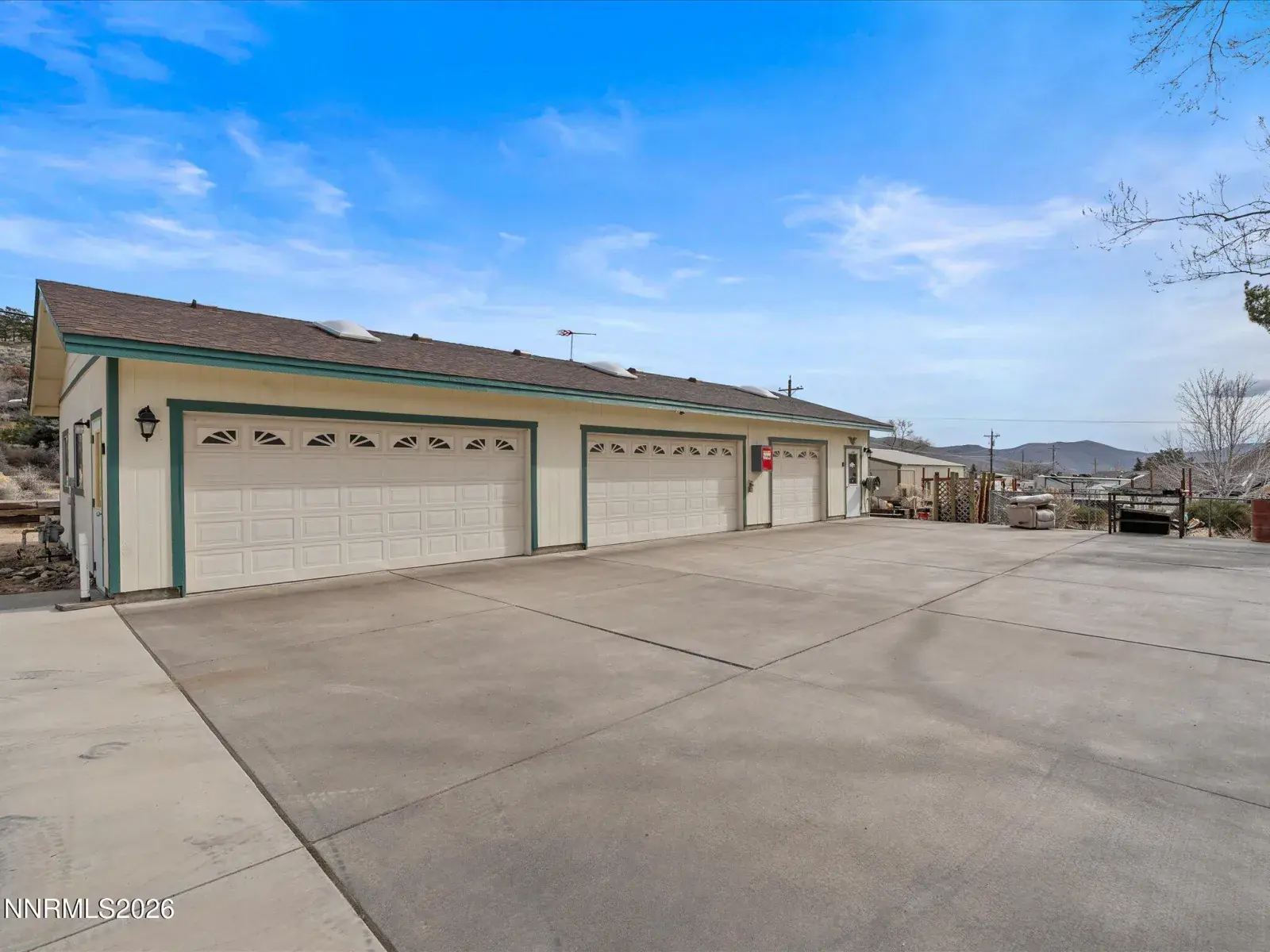 Welcome to your Washoe Valley haven! This charming, newer updated 3-bedroom, 2-bath home sits on a full acre, offering the perfect balance of comfort, space, and peaceful mountain living. Inside, you’ll find a bright, functional layout ideal for a small family, downsizer, or anyone looking to enjoy a little extra breathing room. The converted attached garage creates a versatile bonus space that works beautifully as a game room, home office, gym, or flex space to fit your lifestyle. Car enthusiasts, hobbyists, and outdoor adventure lovers will appreciate the exceptional garage setup. The property features a 2-car attached garage, an impressive 5-car detached garage complete with compressed air run to each garage space for added convenience, plus an additional detached 3-car unfinished garage ready for storage, workshop space, or future customization. There is truly room for all your vehicles, toys, and projects. A Generac backup generator provides peace of mind and reliable power year-round — an incredibly valuable feature for Washoe Valley living. Nature lovers will fall in love with the serene setting, including a history of a Red-Tailed Hawk nest on the property, creating a truly special wildlife retreat right in your backyard. Relax and unwind under the covered back patio while taking in the quiet surroundings and beautiful Nevada skies. If you’ve been searching for space, functionality, and a private retreat with room to grow, this Washoe Valley property delivers it all.