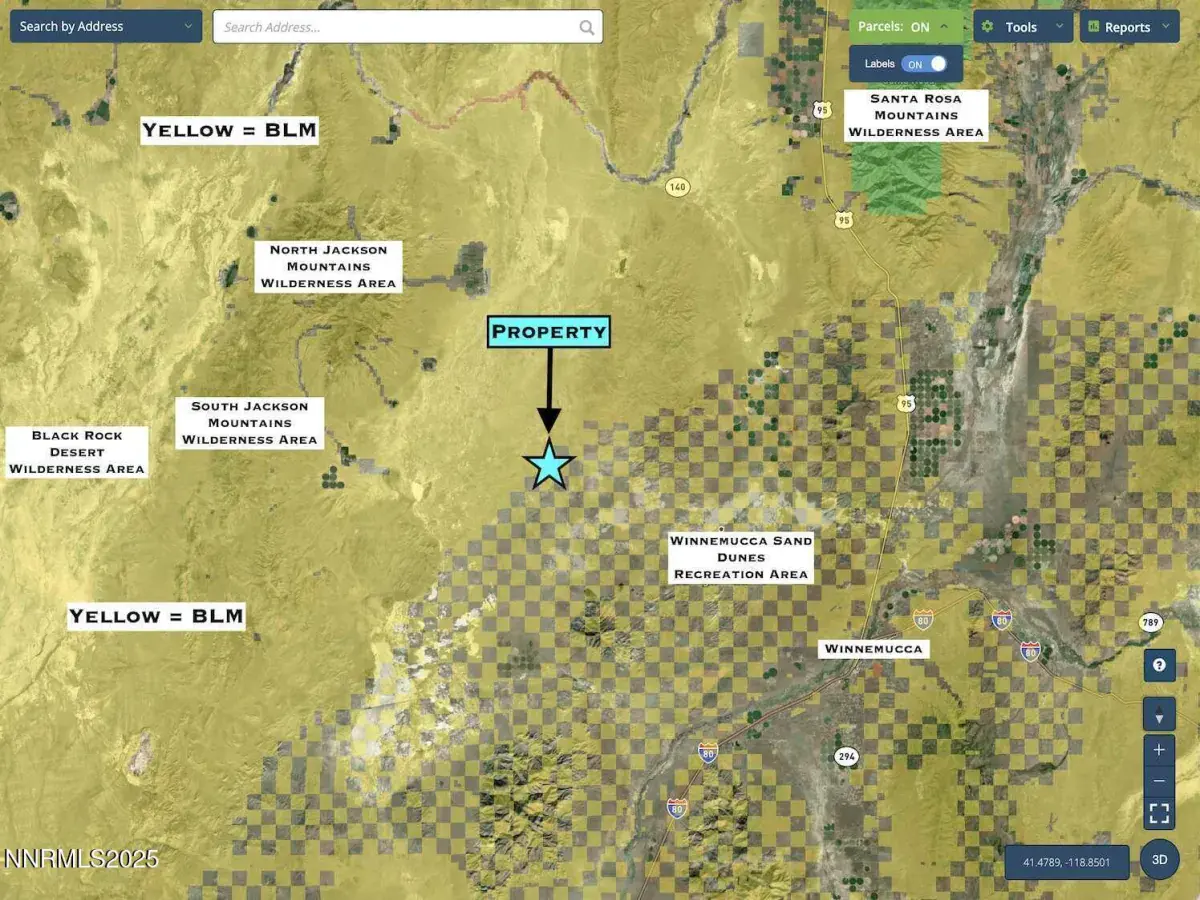 Looking for large REMOTE land with extra room to roam? Here is a 40.27 acre property spanning a quarter mile north-to-south and quarter mile east-to-west. The property is situated in a valley between the Jackson Mountains to the west, the Slumbering Hills to the east, and Blue Mountain to the south. There is contiguous BLM lands extending all the way from the property easement to and beyond Jackson Mountains via BLM roads and jeep trails. Located in GMU 035, this would be an excellent property for a hunting base camp adjacent to the Jackson Mountain public lands. The Winnemucca Sand Dunes are also just a few miles to the southeast from the property and can be accessed via BLM roads and jeep trails. The property is surveyed, staked, has an access easement. The property is zoned M-3 which allows many flexible uses. Well permits in the area show water depths ranging from 50-200 feet below ground. Other uses that would be ideal for this parcel are grazing land for horses and cattle, other agricultural uses, and RV or camping spot, ATV riding, a shooting range, bugout spot, or simply to hold as a long-term asset or inflation hedge. County: Humboldt, NV Parcel Number: 05-0203-10 Legal Description: T38N R34E S27, Lot 10 Utilities: No electricity. Any building would be off grid. Would be well for water and septic for waste. Zoning: M3 (Open Land Use District) HOA: None Nearest Town: 1 hr 35 min to Winnemucca, NV: Population 7,500. Winnemucca has all the services needed, including restaurants, service stations, a hospital, and a Walmart Supercenter. Taxes: 40.76/yr Terrain: Level Elevation: 4,150 ft