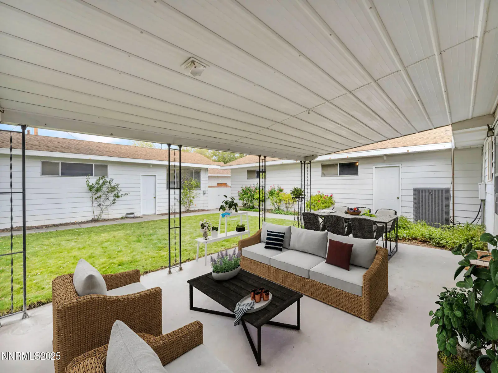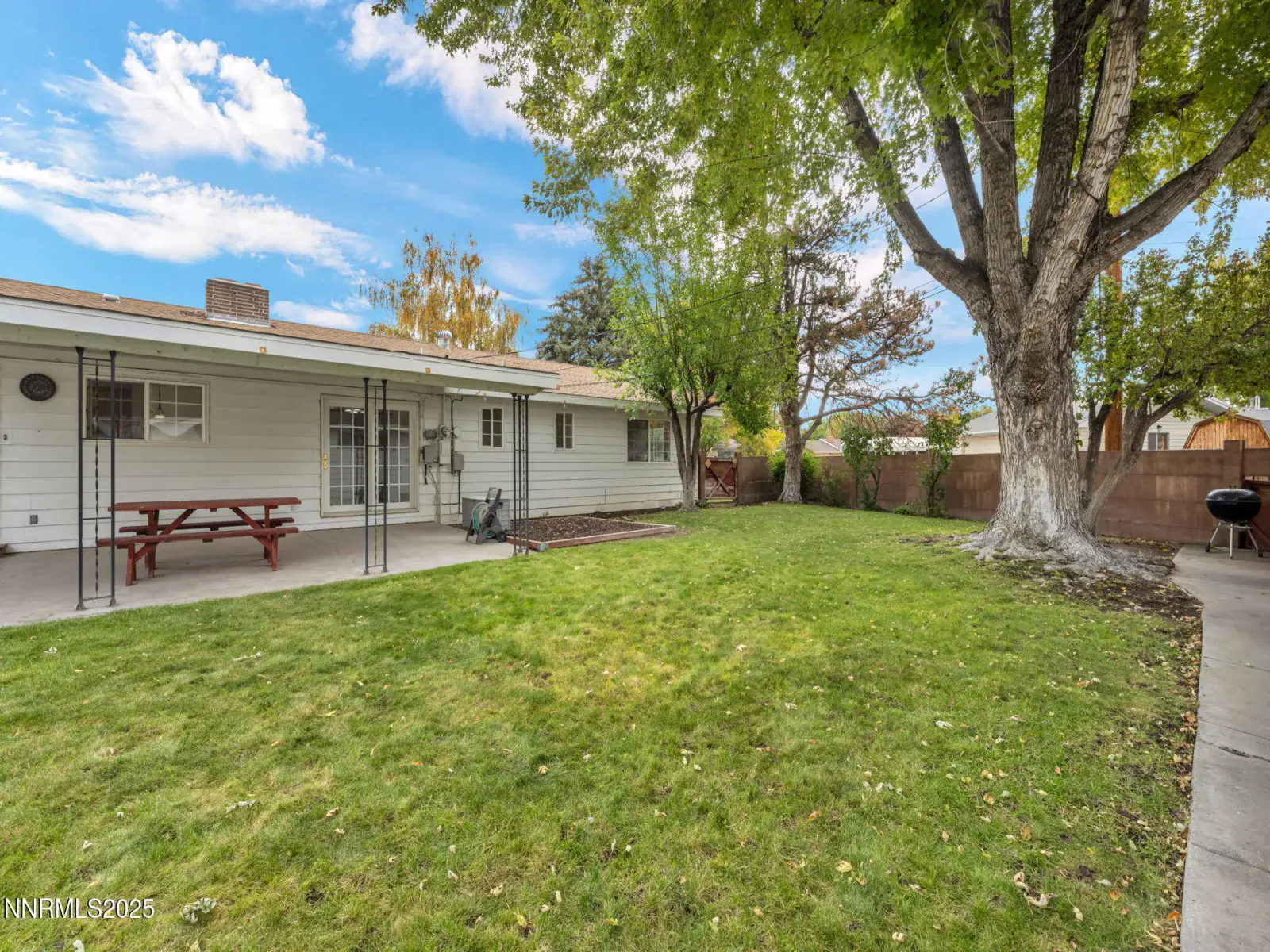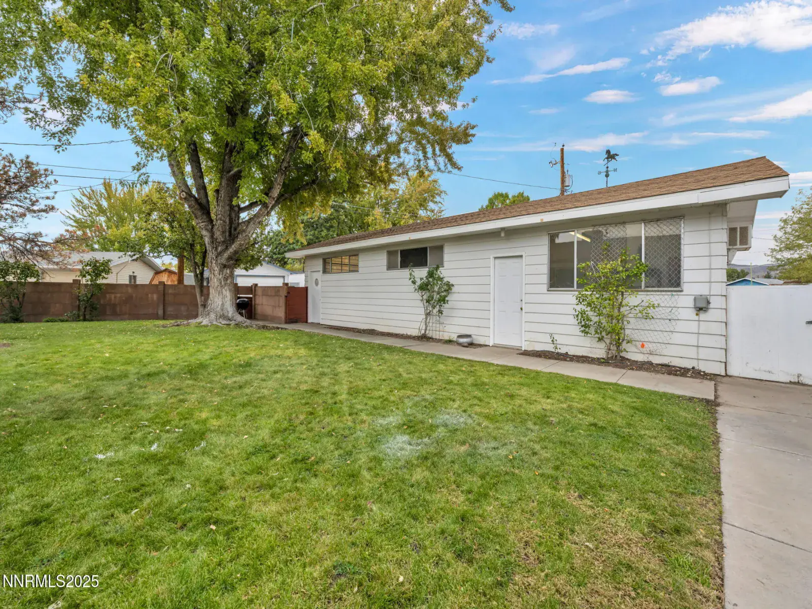 Right in the Heart of Yerington and within walking distance of the schools and downtown, this large one story home sits on .42 of an acre and has so many great features! 2 fireplaces, a sunken family room and a more formal living room, large bedrooms, a private fenced/walled in backyard, towering shade and fruit trees around the whole property. A large back porch covered with an awning which is perfect for entertaining. The primary bedroom/bath is set off on the North Wing of the home and is separated nicely from the others. There is a second bedroom with a private bath as well. All the bedrooms have large closets and there is plenty of storage throughout. The 4 car attached garage is partially finished and if you’re looking for a place to park the RV or large trailers, this property has more than enough room along the West side of the driveway. The outbuilding behind the home is approx 16’x45′. Has a 10′ roll up door, high clearance throughout and has an office/storage area in the back. The back section of the outbuilding has a full set of lower cabinets/countertop/sink with stubbed plumbing for an additional sink as well. This additional space makes for a tremendous amount of possibilities down the road. The Central Air and Furnace Systems are only 1 year old and the roof is only about 8 years old. This is a very unique property with many recent upgrades! come see it before it’s too late! *Some images are digitally staged.