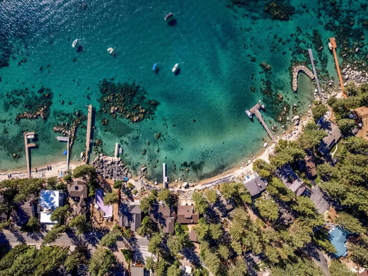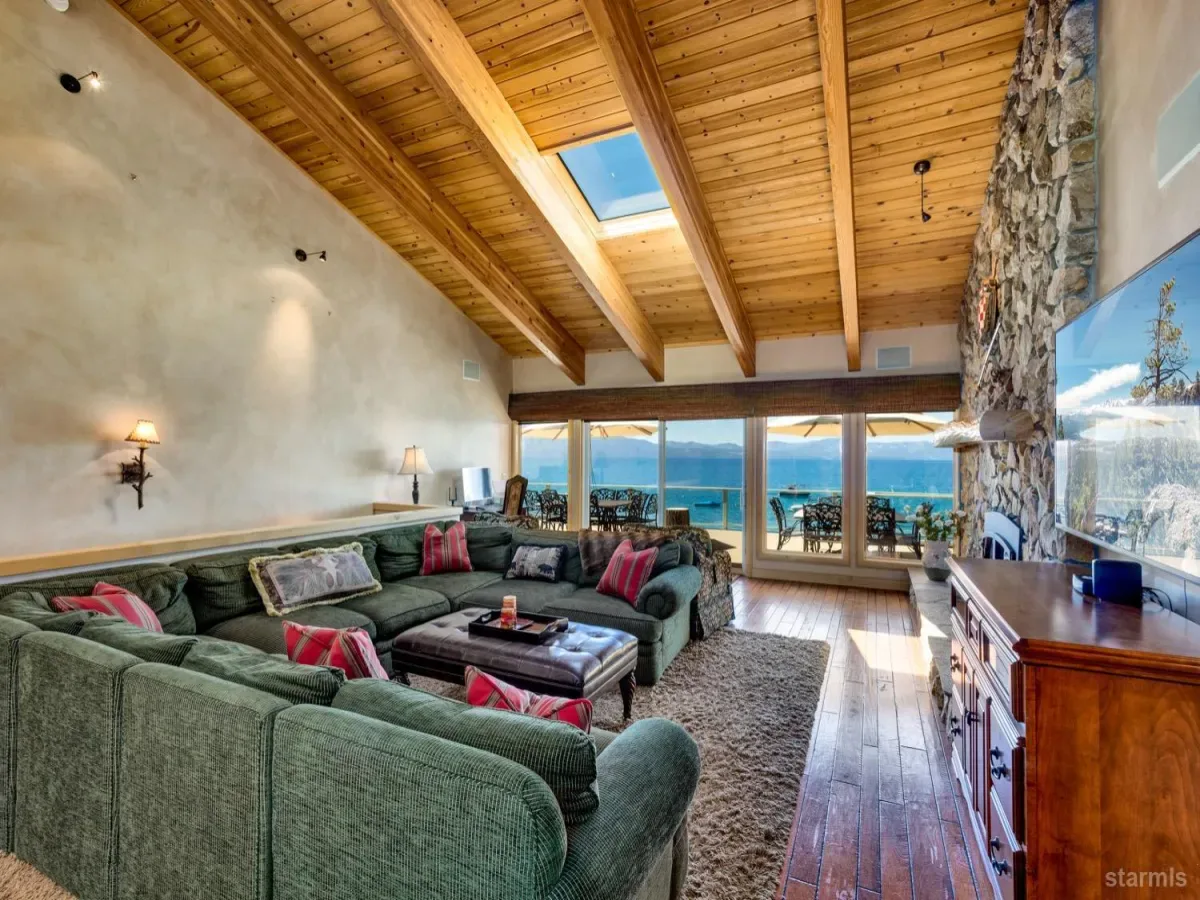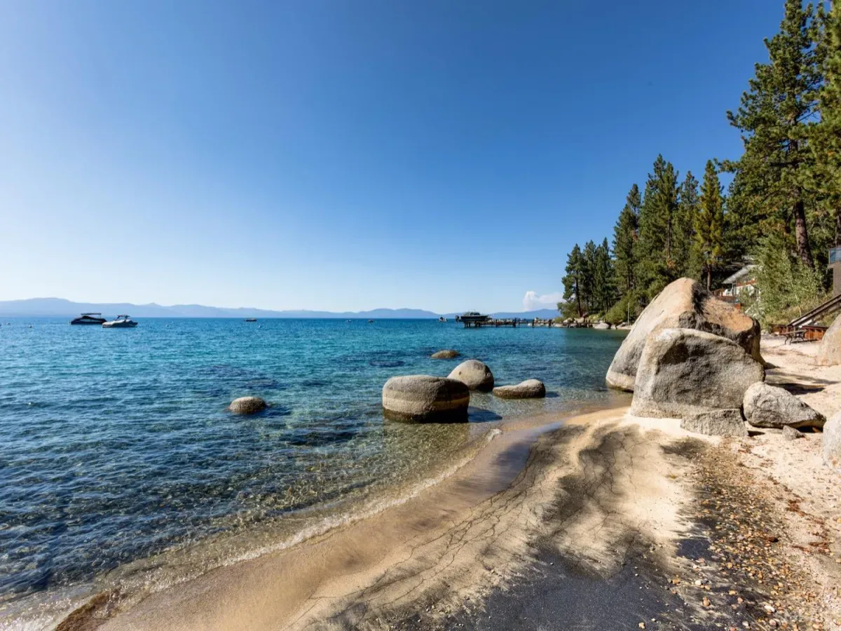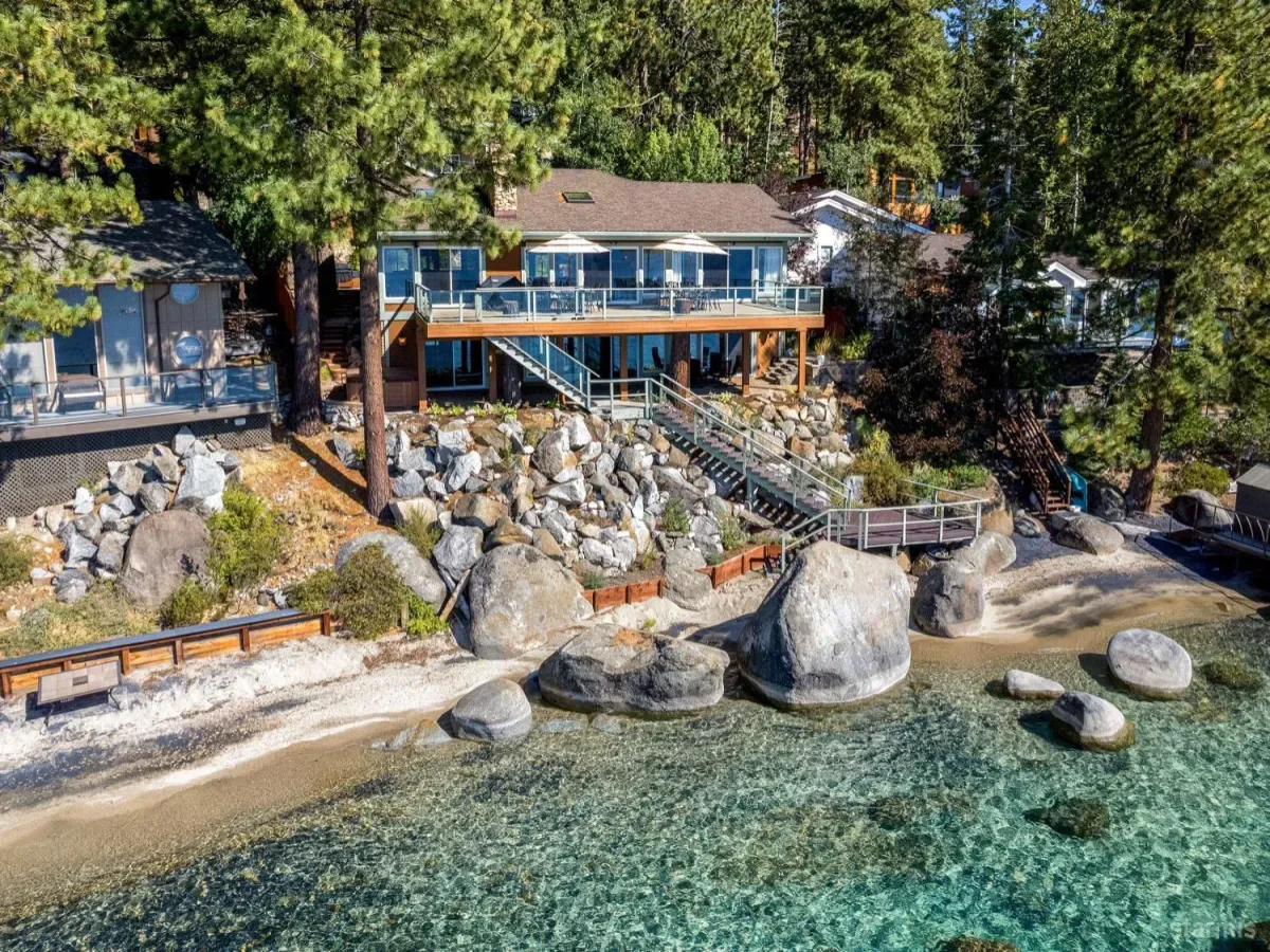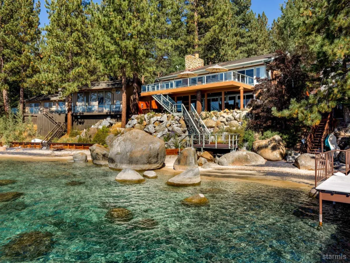Experience unparalleled luxury with this stunning 4,113 sq. ft. lakefront residence in the prestigious Skyland community of Lake Tahoe. This exceptional home boasts breathtaking, unobstructed views of Lake Tahoe, a private sandy beach, and a permitted boat buoyall set within a beautifully landscaped garden with lush greenery and serene outdoor spaces.Designed for sophisticated main-level living, this home features a same-level primary suite with panoramic lake views through expansive wall-to-wall windows and direct access to a the waterfront deck. Radiant-heated walnut flooring extends throughout the formal living room, cozy family room, and adjoining lake-view kitchen, adding warmth and elegance.The gourmet kitchen is a chef’s dream, outfitted with high-end Thermador appliances and a Sub-Zero refrigerator. Beautiful granite countertops, light alder cabinetry, and custom built-ins complete this exceptional space. The open-concept design flows seamlessly into three separate living areas, including a spacious game room with a full wet barperfect for entertaining and enjoying time with family and friends.Three of the five bedrooms offer stunning lakefront views and direct access to the outdoors. Expansive decks and a large patio provide generous space for al fresco dining and sunset gazing. A lakeside BBQ deck enhances the outdoor living experience, while a private stairway offers easy access to the sandy beach and buoy, making lakeside enjoyment effortless.First-class design elements throughout include open beam ceilings, skylights, pine vaulted ceilings, and electronic shades, all contributing to the home’s rustic yet luxurious charm. The oversized 2-car garage, complete with extra storage space, adds practicality to this extraordinary property.