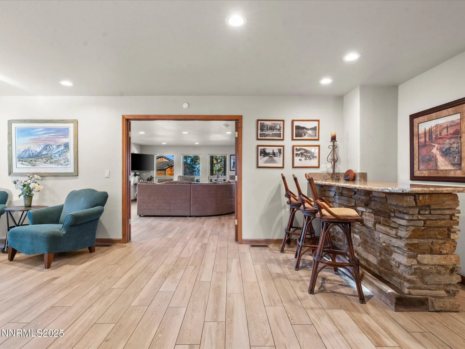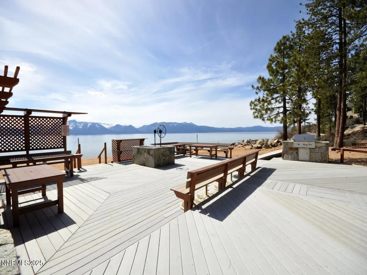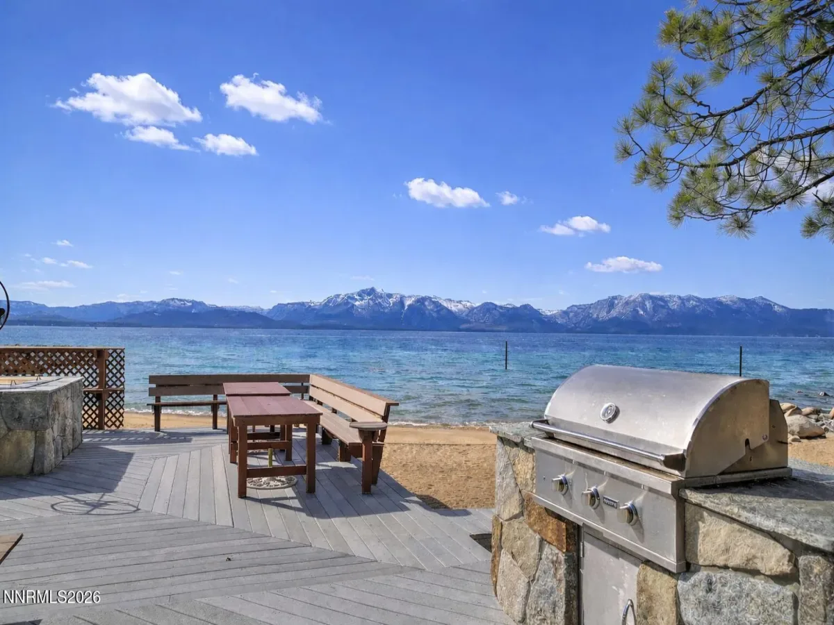 Welcome to 462 Reno Avenue, an elegant, updated mountain-contemporary retreat located within the prestigious, gated lakefront community of Elk Point in Zephyr Cove. Just one block from the private homeowners’ beach along Lake Tahoe’s coveted East Shore, this exceptional six-bedroom, five-bath residence offers approximately 3,250 square feet of thoughtfully designed living space, blending privacy, serenity, and effortless access to world-class recreation. Inside, the home unfolds with a warm, inviting ambiance defined by rich textures, abundant natural light, and custom finishes throughout. The main living area is highlighted by expansive windows framing filtered lake views and towering pines, while a dramatic stone fireplace with a brass wood-stove insert serves as a striking focal point. Wide-plank flooring, vaulted ceilings, and generous gathering spaces create an environment equally suited for relaxed daily living and refined entertaining. The beautifully remodeled kitchen features granite countertops, stainless-steel appliances, custom cabinetry, and a large center island with seating for five. An adjacent dining area flows seamlessly into a second living space complete with a custom stone bar, built-in entertainment center, and a nostalgic jukebox—ideal for hosting guests or accommodating multi-generational living. Throughout the home, thoughtful amenities include multiple flat-screen TVs, ceiling fans, board games, books, and children’s toys, all curated to enhance comfort and enjoyment. The bedroom layout includes a luxurious California King primary suite, two well-appointed guest bedrooms with queen beds, and a fourth bedroom with twin daybeds. Each of the five full bathrooms is spa-inspired, offering both privacy and convenience for owners and guests alike. Outdoor living is equally compelling. A spacious deck invites you to relax with views to the lake, dine, and enjoy the crisp alpine breeze. The property offers an ideal balance of privacy and accessibility, with hiking trails and a short walk to the Round Hill Pines beach, bar and restaurant just outside your door and the private Elk Point beach and marina only a short stroll away. Additional features include a gas grill for casual outdoor dining and three private driveway parking spaces, plus to in the garage and 2 in-front of the garage. Elk Point is one of Lake Tahoe’s most storied and exclusive communities, established in 1927 and comprised of just 93 homes. Residents enjoy gated access, a private homeowners’ beach and swimming area, picnic facilities, a full-time caretaker, a private water system, snow removal, and a well-managed HOA. Boating enthusiasts will appreciate the private boat ramp, marina slips (additional cost), trailer parking, and dedicated boat garages (additional cost). There is a 1 time EP transfer fee of $20K that is paid by the Buyer.