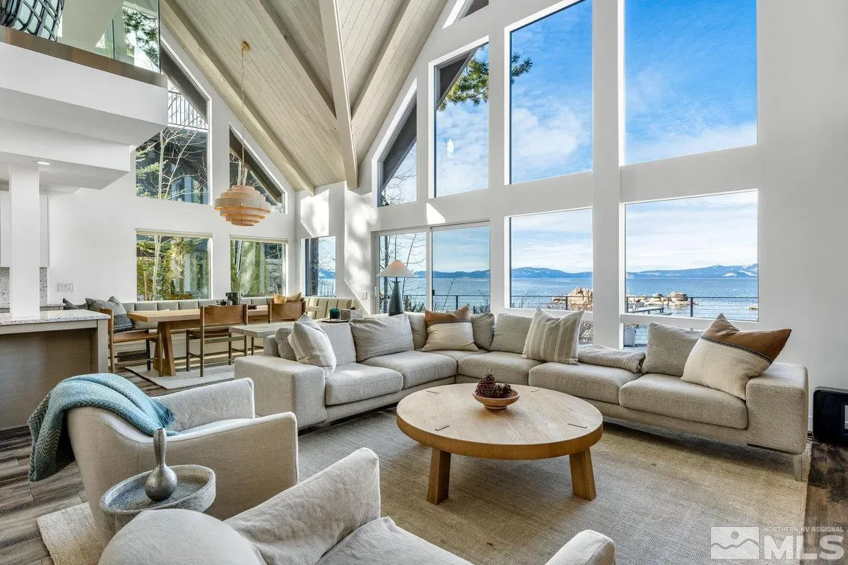 Stunning Lake Tahoe waterfront property offers 80 feet of private white sand beach on the sheltered cove of Skyland in tax-friendly Nevada. Enjoy panoramic lakefront views from every room of this beautiful home. The house is move in ready, updated with designer interiors and finishes. The recently renovated Chef’s kitchen is a dream featuring all new Wolf and SubZero appliances, coffee bar and large walk-in pantry. Enjoy stunning views from the spacious main level primary bedroom that offers direct access to the deck and beach. Elegantly remodeled upper level features 2 en-suite bedrooms, a cozy den with a fireplace and room for overflow guests. The incredible Lake and Mountain Views from the loft office space may make it difficult to get work done. This property is perfectly setup for indoor/outdoor living featuring a spacious deck, sheltered cove, and two private buoys. Enjoy the day entertaining, swimming, kayaking and boating from your own backyard. Other new upgrades include central HVAC, tankless water heater, and a Generac automatic standby generator. Check out the Virtual Tour!